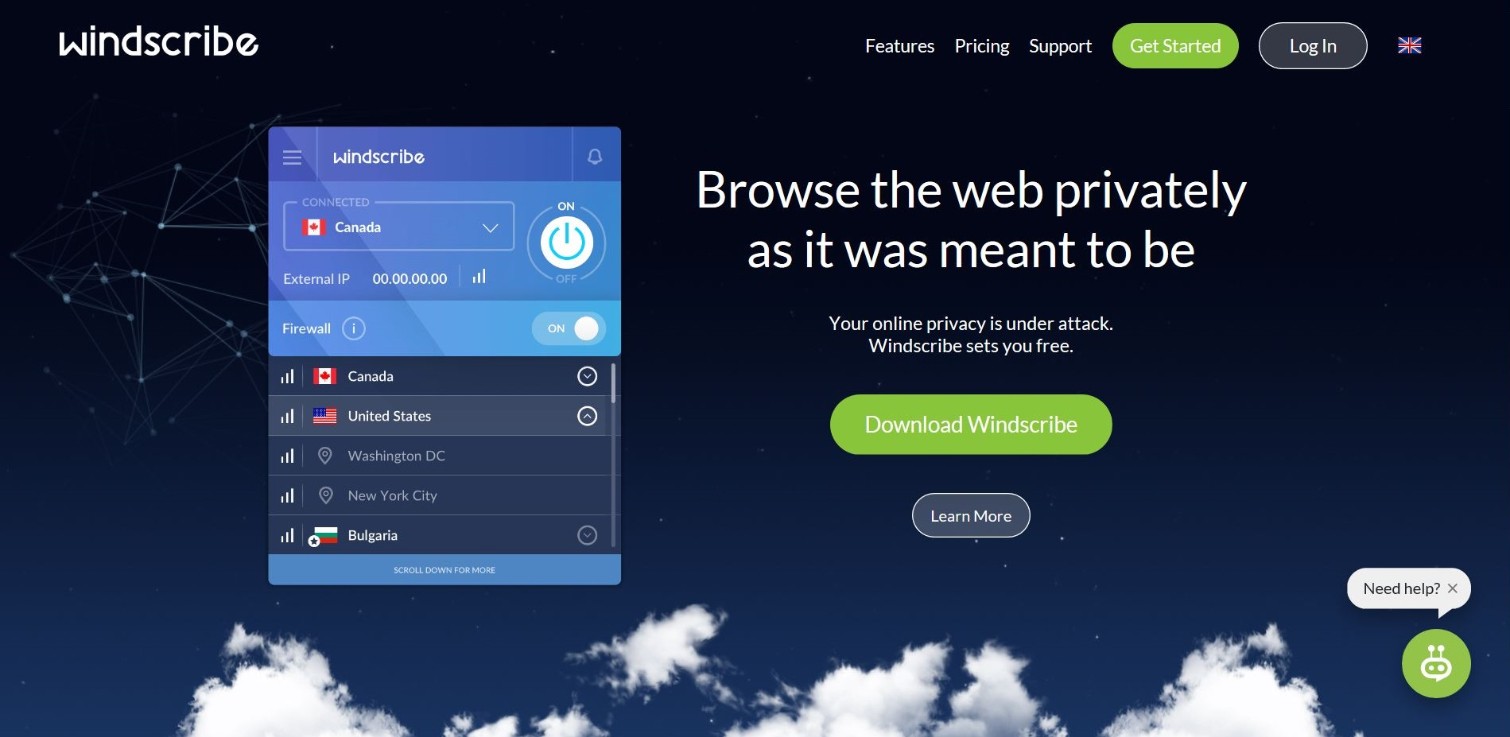 بعد Windscribe من أفضل برامج vpn المجانية و السريعة التي سوف تمنحك تجربة آمنة وسلسة ورائعة على الويب، في البداية يجب أن تعرف بأن برنامج الفي بي إن هذا لديه سياسة عدم الاحتفاظ بالسجلات لضمان عدم الكشف عن هويتك على الإنترنت. ويوفر الإصدار المجاني من Windscribe اتصالاً سريعًا وسلسا بالإنترنت عبر خوادمه المنتشرة في حوالي 11 بلد في العالم وهذا يشمل الولايات المتحدة وكندا وألمانيا والنرويج وهولندا وهونغ كونغ. ومع أن البيانات محدودة عند استخدام البرنامج حيث تحصل على 2 جيجابايت من البيانات الشهرية ولكن يمكنك زيادة العدد إلى 10 جيجابايت مع سرعة تصل إلى 240 ميجابايت في الثانية عندما تقوم بالتسجيل وإضافة بريدك الإلكتروني للخدمة، وبجانب الميزات الأساسية، سوف يوفر لك أفضل تطبيق لفتح المواقع المحجوبة اداة لحظر الإعلانات المزعجة والبرامج الخبيثة ومنع أي محاولة لتتبع ومعرفة ما تقوم به على الويب ويمكنك تثبيت برنامج Windscribe واستخدامه على أي عدد تريده من الأجهزة في وقت واحد بدون مشكلة.