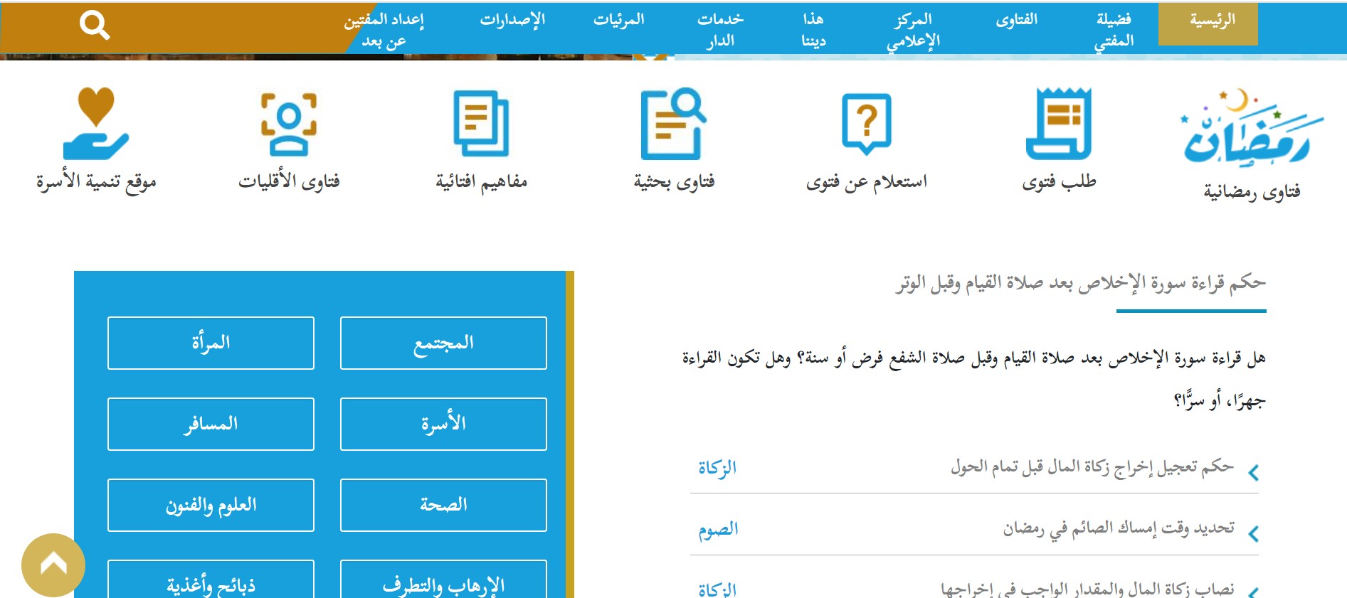- توجه إلى موقع دار الإفتاء المصرية من هنا: https://www.dar-alifta.org/ar