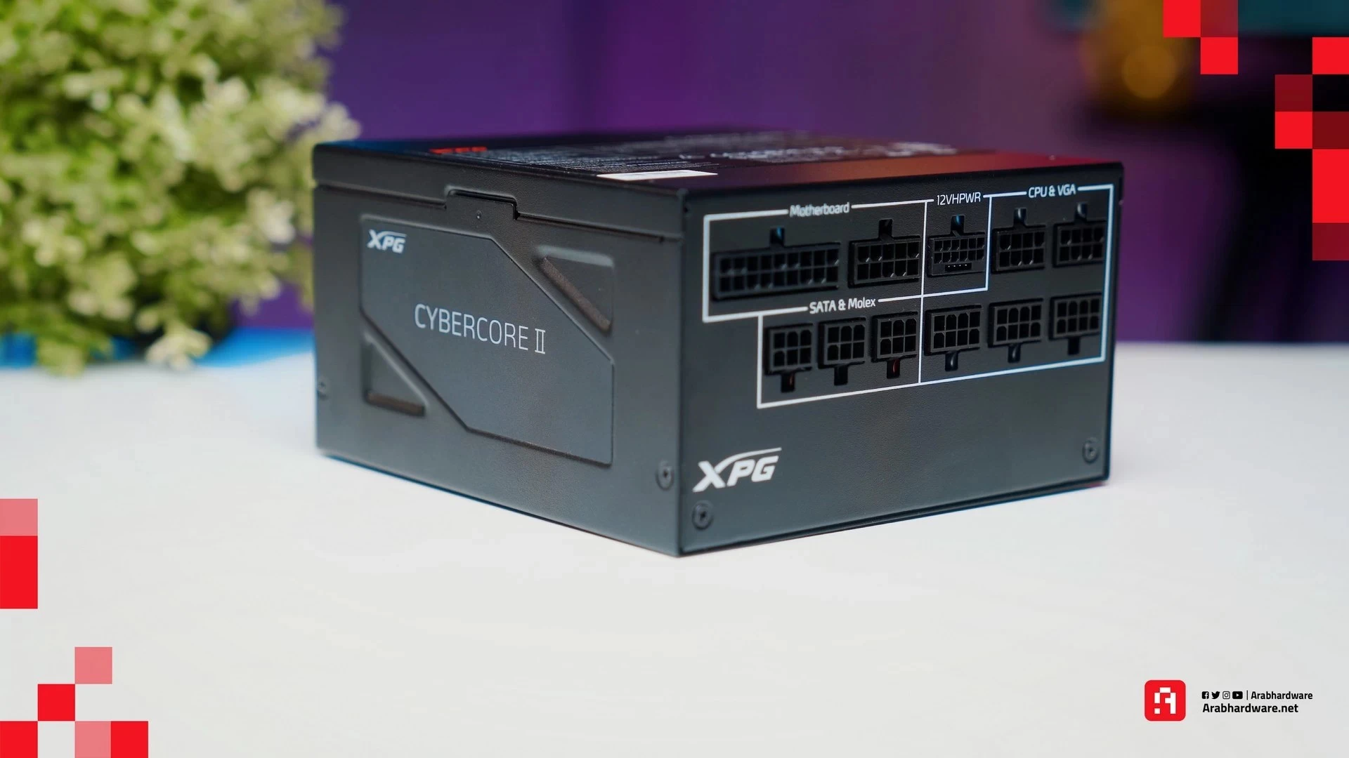 من النظرة الأولى على المواصفات والتصميم، ستُدرك تماماً أن XPG لم تدّخر جُهداً في التصميم الخاص بمزود الطاقة CYBERCORE II 1000W الذي ما زال مفضل لدينا، إذ يأتي المزود مع جميع المكثفات اليابانية 105c، وتصميم دائرة كاملة من DC إلى DC، ومروحة Nidec ذات نوعية جيدة بحجم 120 ملم، وثمانية أنظمة حماية لضمان السلامة والاستقرار.