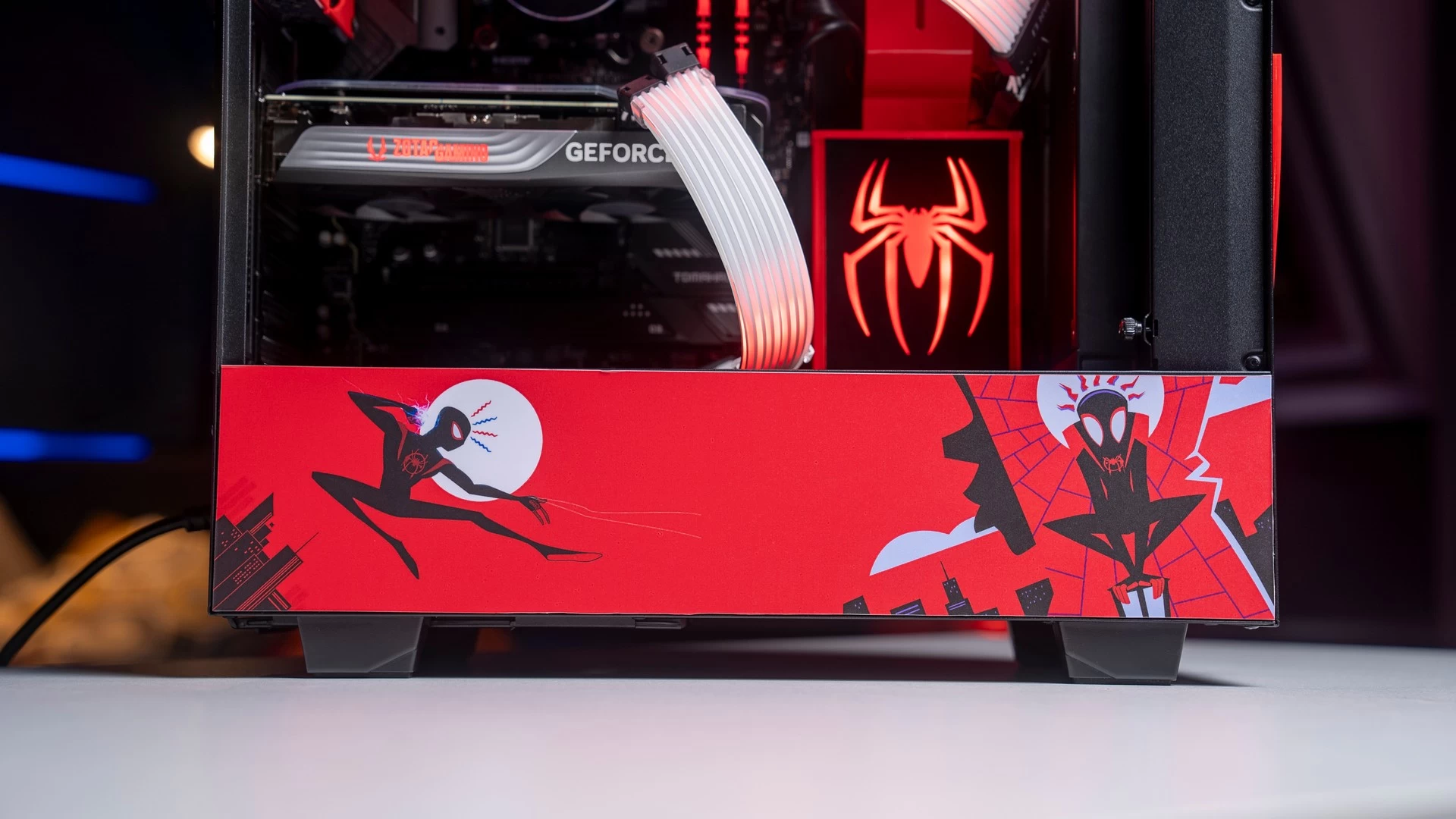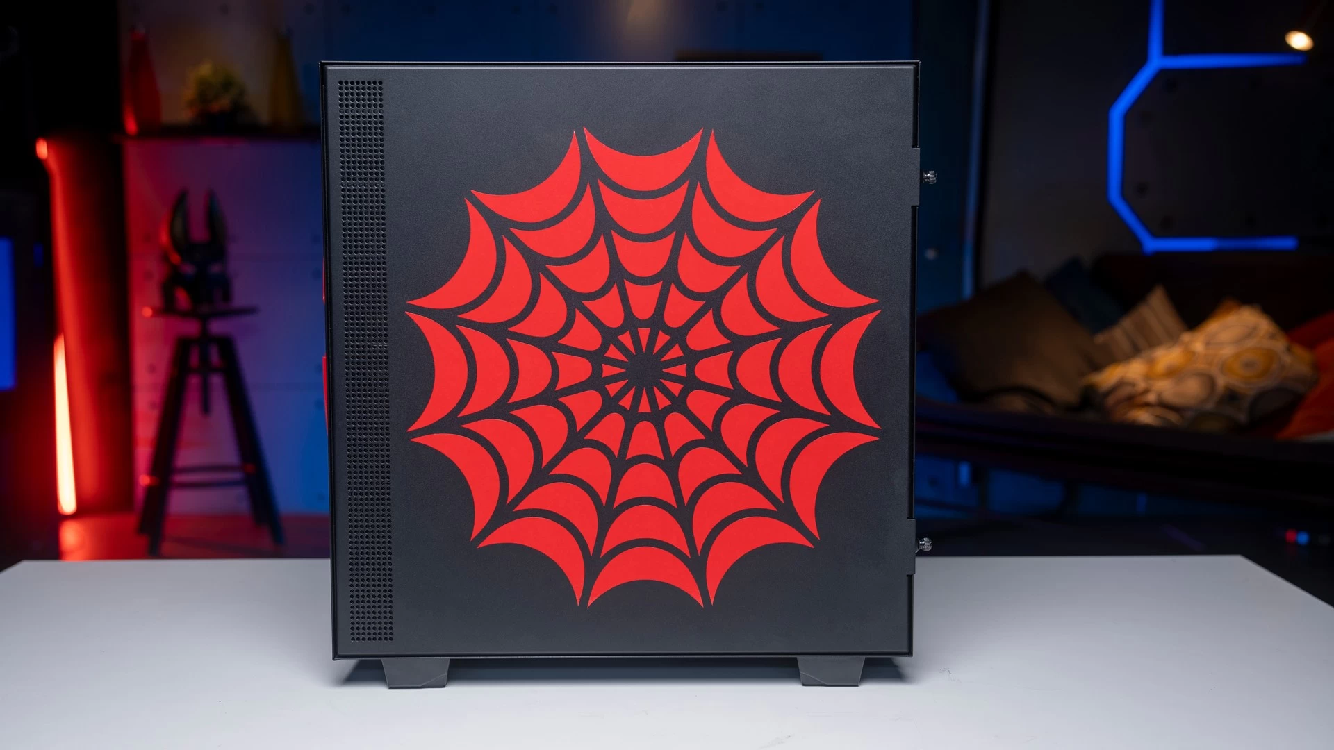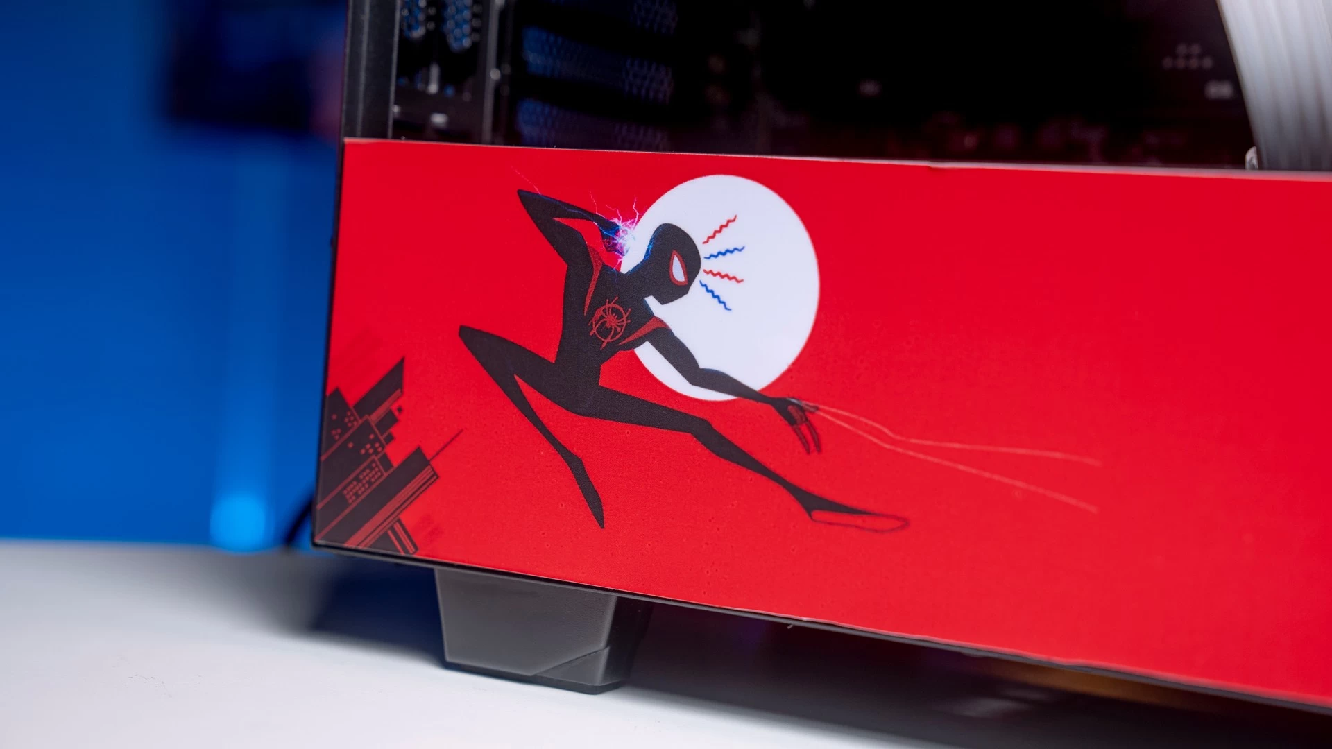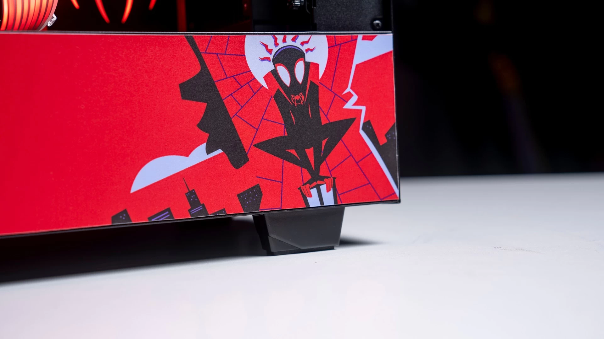 وبالرغم من أن الكيس التي معنا اليوم NZXT H510i لا تأتي مع الكثير من البهرجة من ناحية الشكل الجمالي، إلا أن تباين الألوان قد يكون أحد الأمور التي قد تجعل نقطة التصميم لا تُشكّل عائق كبير، فالكيس متوفرة باللون الأسود وأيضاً الأبيض الذي بالمناسبة يبدو جميلاً للغاية. لذا فمع بعض اللمسات الخاصّة من عندنا، تحوّلت الكيس إلى قطعة فنّية أُخرى متوافقة تماماً مع عالم الرجل العنكبوت أو سبايدرمان.