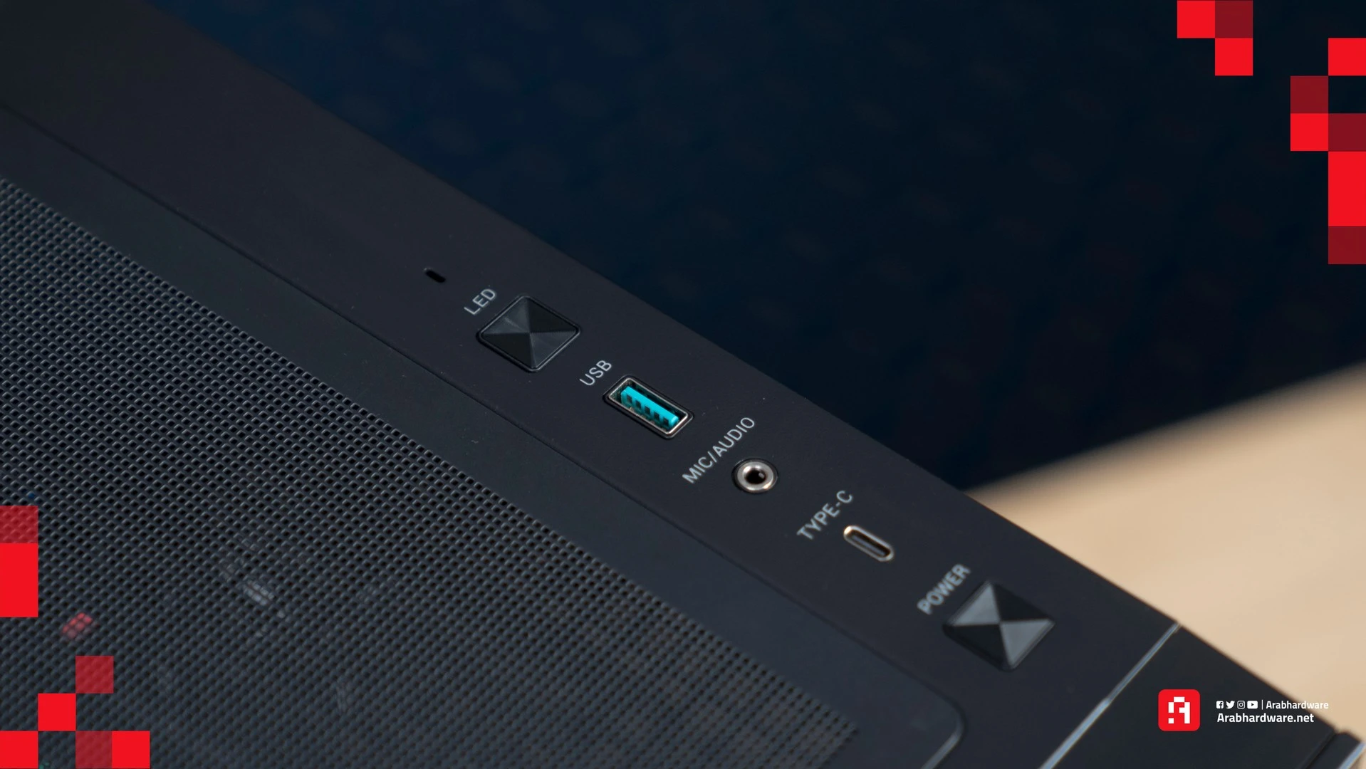 كل هذا بالإضافة إلى مساحة كبيرة لإدارة الكابلات تصل إلى 26 ملم خلف درج اللوحة الأم. أمّا اللوحة الأمامية، فتوفّر لك ميزات توصيل سهلة ومتنوّعة مثل منفذ Type-C، منفذ USB 3.0 ومنفذ الصوت الهجين، لتوفّر لك أقصى قدر من السهولة والتوافق في التعامل مع صندوق الحاسب.