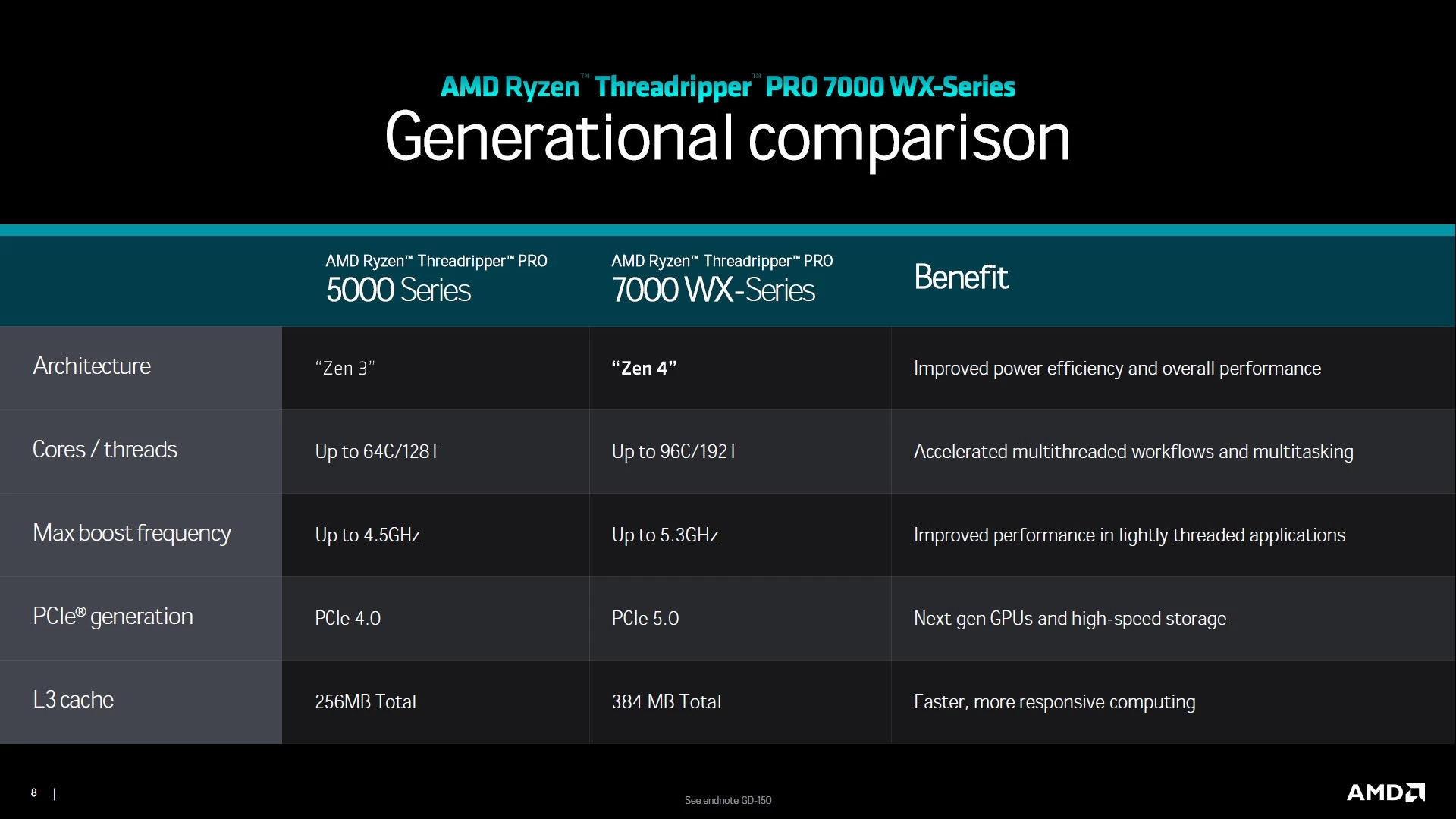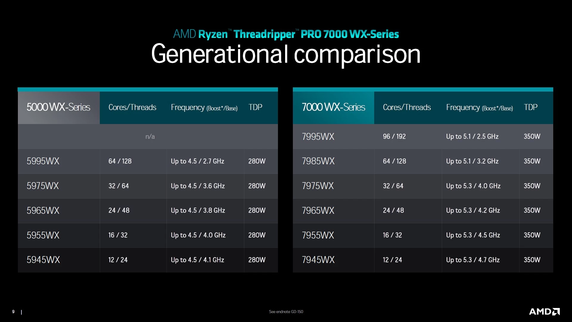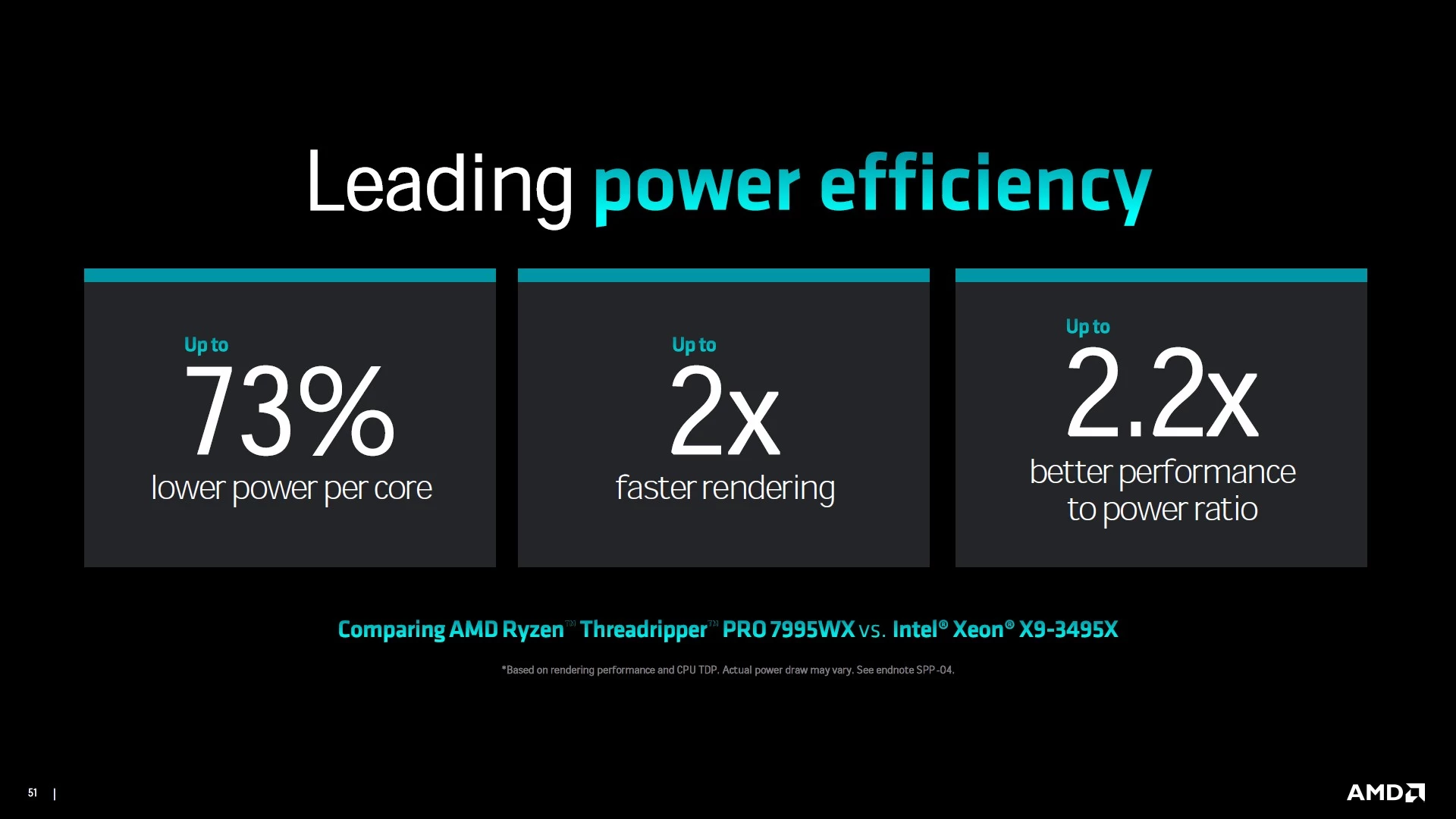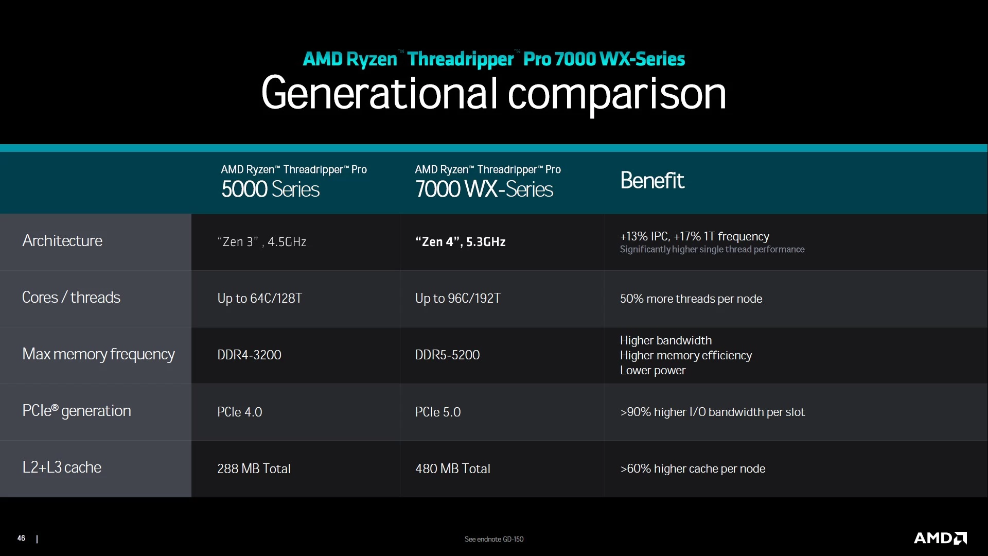 يأتي الجيل الجديد من معالجات Threadripper بفئتيها Threadripper Pro 7000 WX و Threadripper 7000 لتخلف معالجات Threadripper 5000 الأخيرة التي كانت بدورها لها اليد العُليا أمام معالجات الخوادم من إنتل في تطبيقات التصميم والتصيير مثل Autodesk Maya و Chaos V-Ray بما يصل إلى 37% من فارق الأداء المُتعدد الأنوية.