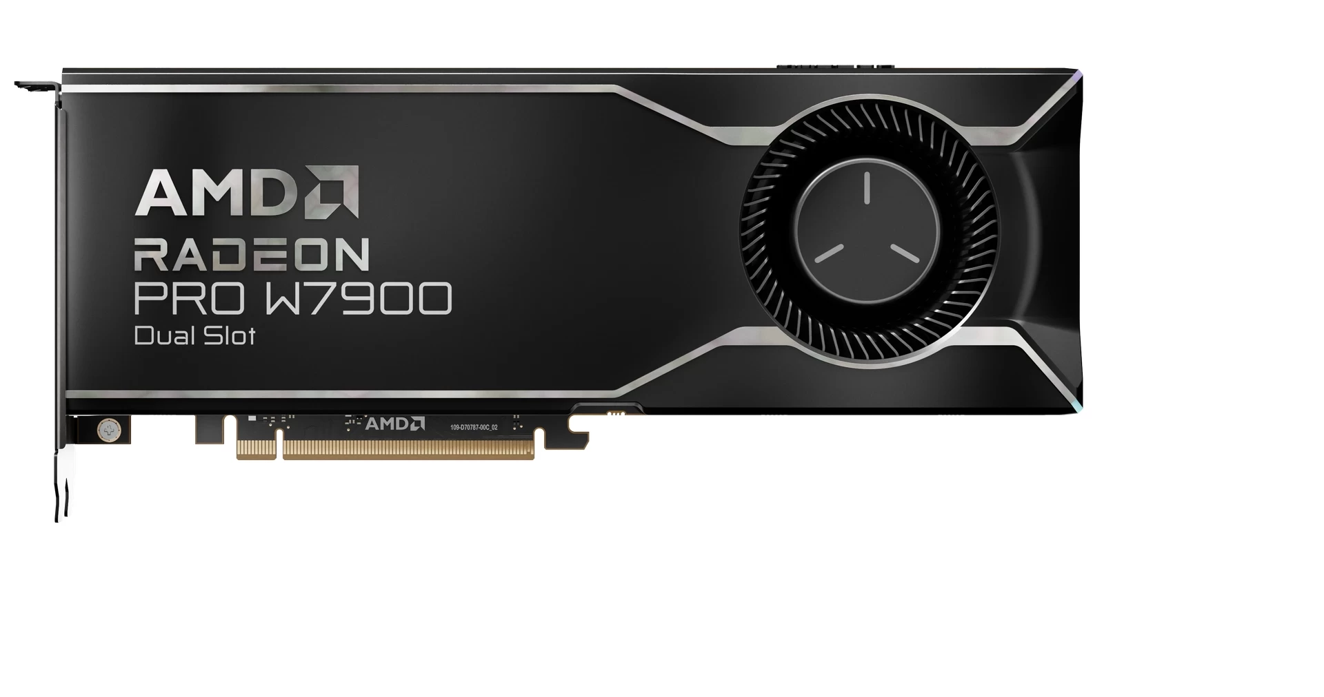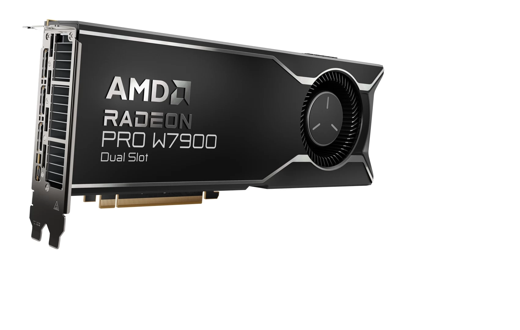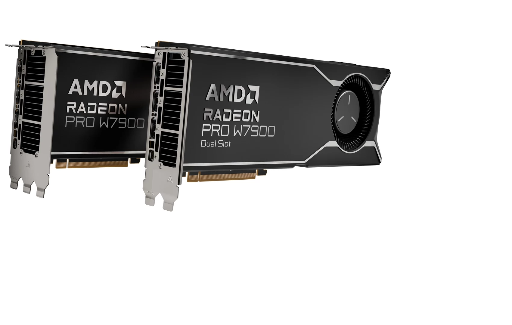 زودت AMD بطاقة AMD Radeon Pro W7900 Dual Slot الرسومية بذاكرة حجمها 48 جيجابايت من نوع GDDR6 EEC و 192 مسرع للذكاء الاصطناعي كما تحتوي على 4 منافذ Displayport 2.1. سرعة القراءة / الكتابة للبيانات لهذه البطاقة يمكنها أن تصل لـ 864 جيجابايت/ ثانية كما يصل أداءها إلى 123 Teraflop. يصل استهلاك البطاقة إلى 295 واط وعرضها 280 مم.
