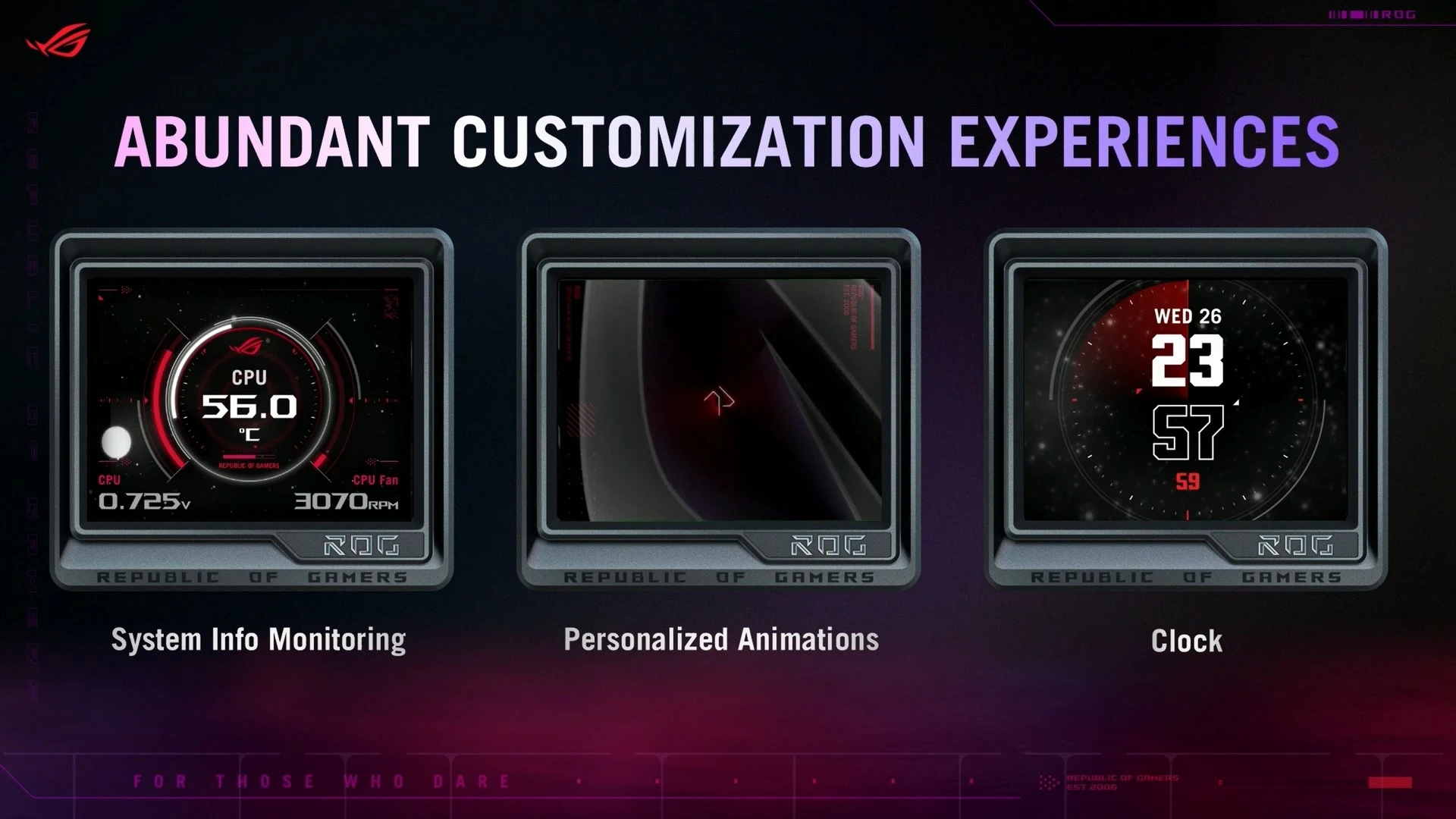 وبذكر التبريد، لا بد لنا أن نذكر المبرد المائي الجديد ROG RYUJIN III 360 ARGB Extreme، الذي يتمتّع بمضخّة Asetek Emma من الجيل الثامن. مع مروحة مغناطيسية أكثر سمكًا، وأكثر كفاءة لتوفير تبريد أفضل من أي وقتٍ مضى. ولتوفير سهولة أكبر في التعامل، فقد تم تجميع جميع كابلات الطاقة والإضاءة داخل وصلة واحدة؛ في حين تم تحديث الشاشة لتُصبح أكثر دقّة وأسرع، مع توفير أوضاع عرض أكثر للمعلومات.