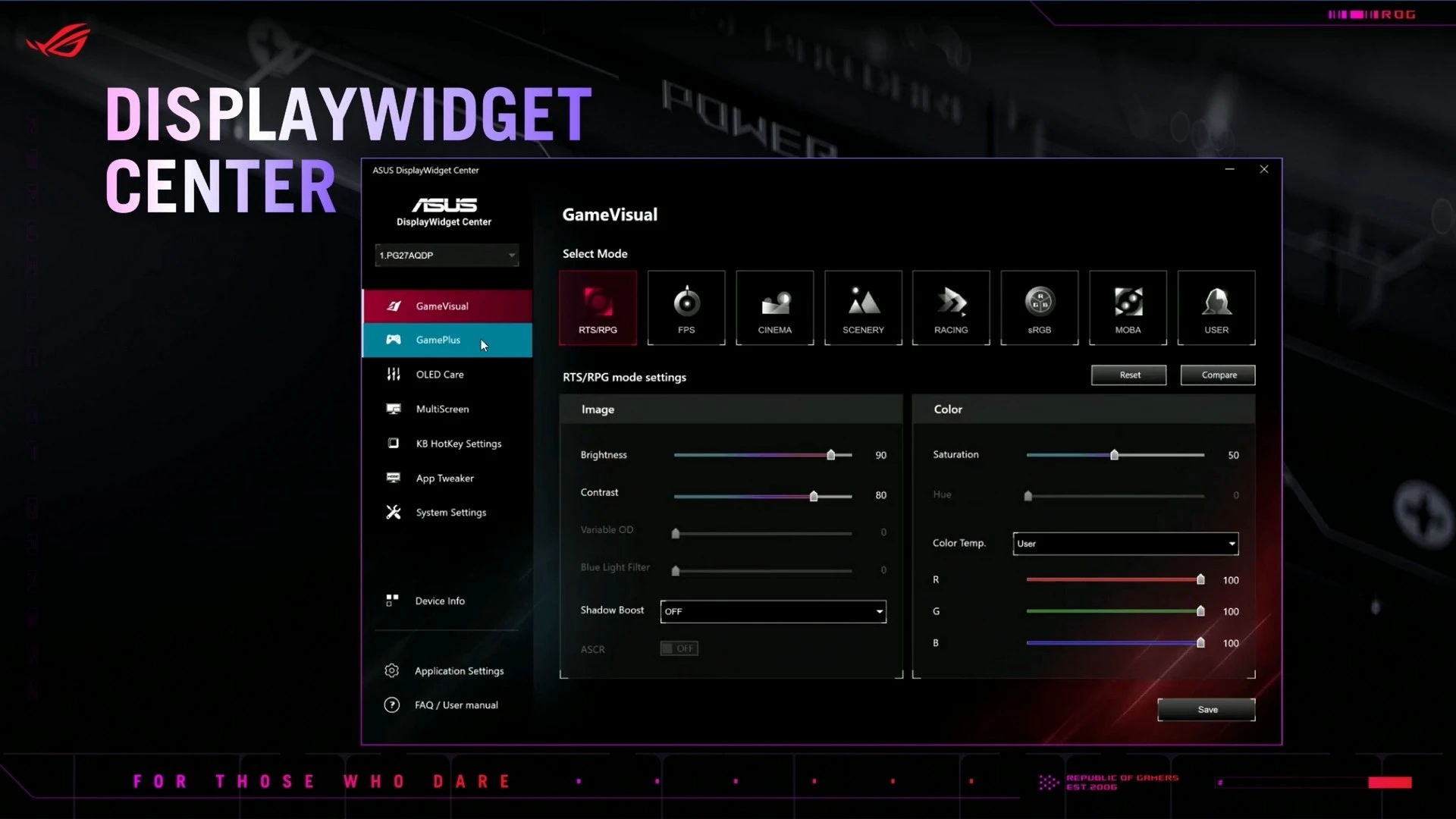 لا تكتمل أي تجميعة كمبيوتر بدون شاشة، لذا فاهتمام ASUS بشاشات الألعاب هو أمر معلوم لدى الجميع. وهذه المرّة لم تُطوّر الشركة ترسانتها العتادية فحسب، وإنما قامت بتطوير برنامج جديد للتحكم ومُراقبة الشاشات وعمل إعدادات خاصة وغير ذلك من الأمور، وسمّته Display WidgetCenter. حيث يسمح لك هذا التطبيق بتعديل إعدادات الشاشة لكل تطبيق على حده، أو حتى استخدام قدرات الذكاء الاصطناعي لفعل ذلك.