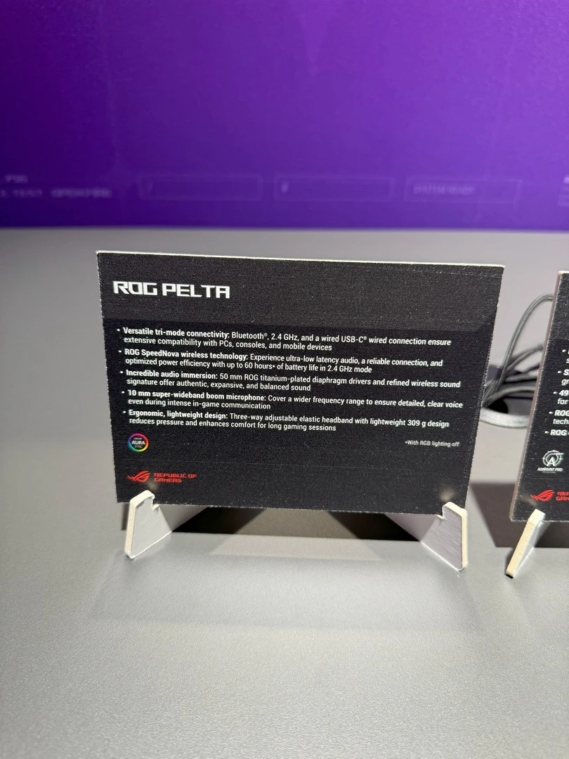 وأخيرًا وليس آخرًا لدينا سمّاعة الألعاب ROG Pelta، الخفيفية، وصاحبة العمر الطويل والشكل الجمالي المُميّز، اللاسلكية. فمع وزنها الخفيف الذي يصل إلى 309 جرام فقط، والقدرة على تعديل وضع عصابة الرأس بثلاثة أوضاع مُختلفة لتُناسب اللاعبين وتوفّر لهم الراحة اللازمة، مع وسائد مُريحة من الفوم؛ تستطيع هذه السمّاعة الانتقال بتجربة اللعب الخاصة بهم إلى مُستويات غير مسبوقة.