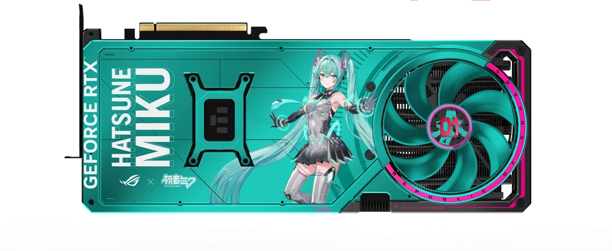 - الكارت الرسومي ROG Astral GeForce RTX 5080 OC Hatsune Miku Edition: يتميز بتفاصيل مستوحاة من Miku على اللوحة الخلفية.