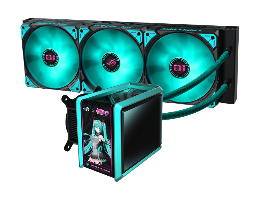- نظام التبريد ROG Ryuo IV 360 ARGB Hatsune Miku Edition: يجسد كذلك طابع Miku بتصميم جريء وشاشة AMOLED منحنية بحجم 6.67 بوصة القادرة على عرض رسوم ثلاثية الأبعاد.