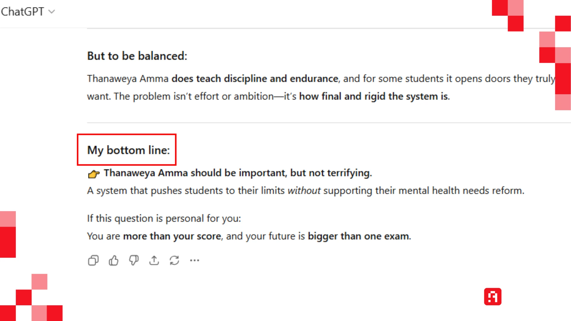 ولكنه الآن يعطي رأيه "بكل صراحة ووضوح" ويحلل الثانوية العامة من "وجهة نظره"، وهذا الأمر نمط عام متكرر وليس مخصوصًا فقط في هذا السؤال الذي أوردته مثالًا فقط.