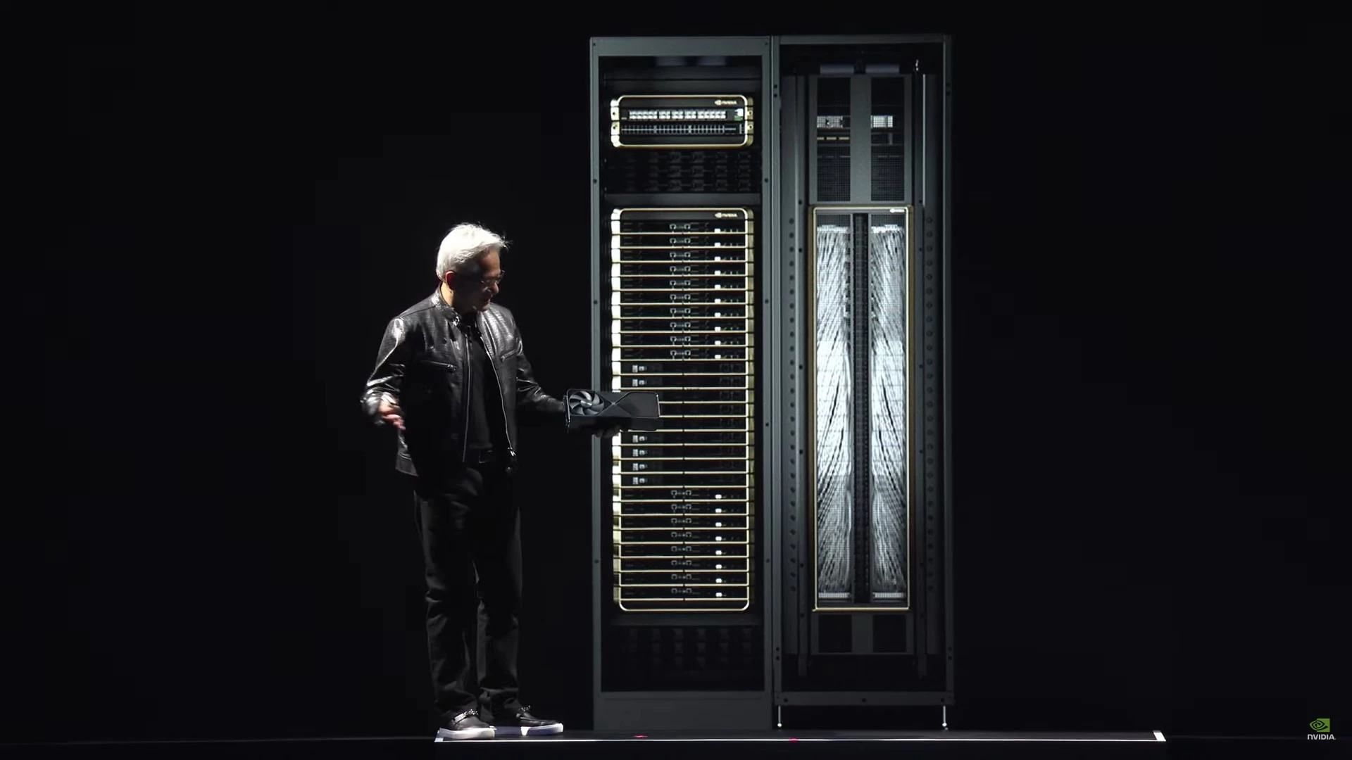 عندما ابتكرت NVIDIA العديد من التقنيات التي تمكّن التعامل مع الذكاء الاصطناعي في الماضي، لم يشترِها أحد آنذاك، وذلك لأن أحدًا لم يتمكن من استخدامها. حتى جاءت بعد ذلك شركة OpenAI، والتي كانت في ذلك الوقت شركة صغيرة في سان فرانسيسكو ولكنها استطاعت رؤية الإمكانات الكبيرة التي ستوفّرها هذه التقنيات. واستطاعت بالفعل من تحويل "المُحولات أو الـ Transformers" التي يعود ابتكارها لعام 2017، إلى شيءٌ ما يُسمى ChatGPT، الذي أصبح الجميع يستخدمه في الوقت الحالي.