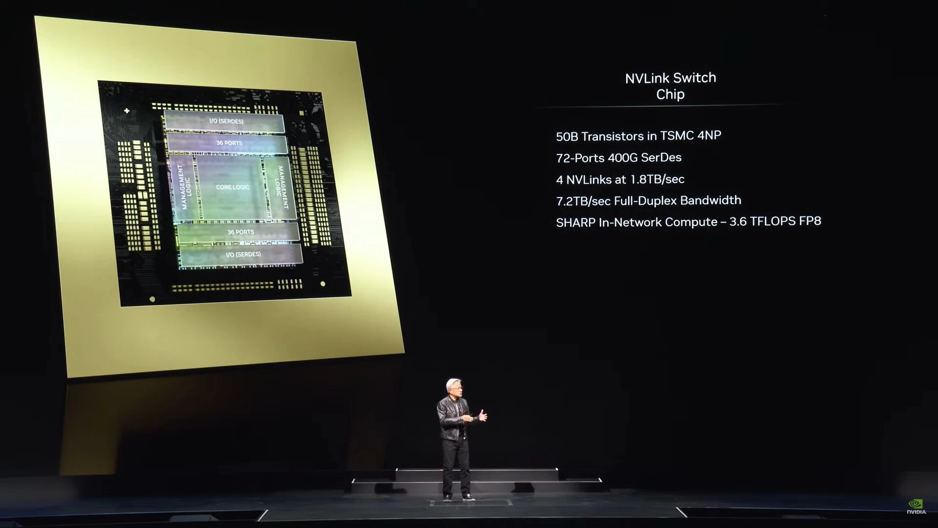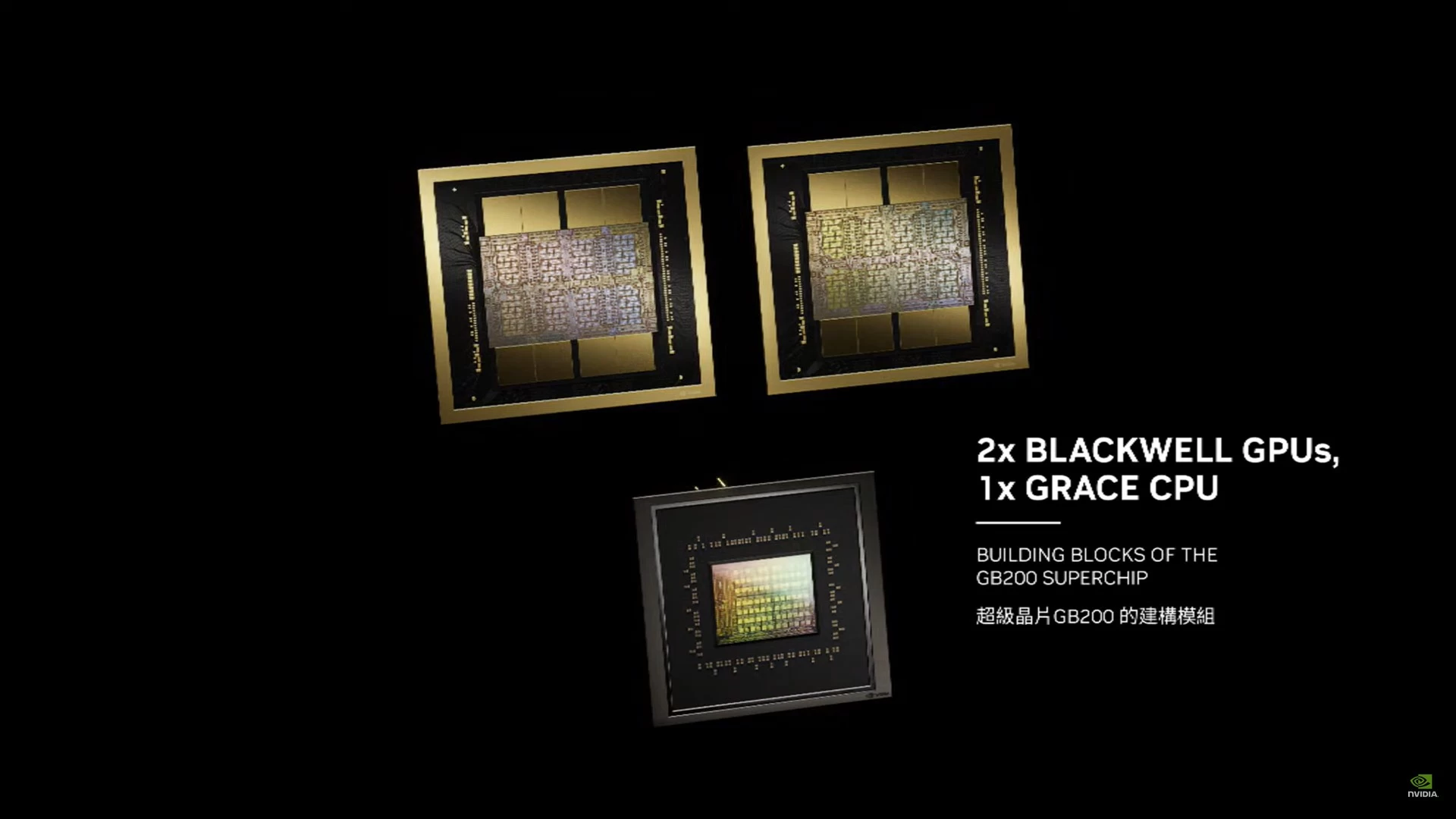 رجبوا معنا بمنصة Blackwell، حيث تم جمع أكبر شريحتين يُمكن لشركة TSMC توفيرهما، وتم ربطها باستخدام وصلات الجيل الخامس من NVLinks بسرعة 10TB/s ومعالج Grace على شريحة واحدة كبيرة. هذه الشرائح يُمكن تجميعها هي الأُخرى في أنظمة أكثر قوة وأكبر للحصول على مستويات أداء أكثر قوّة، والتي بدورها يُمكن جمعها في أنظمة أكبر.