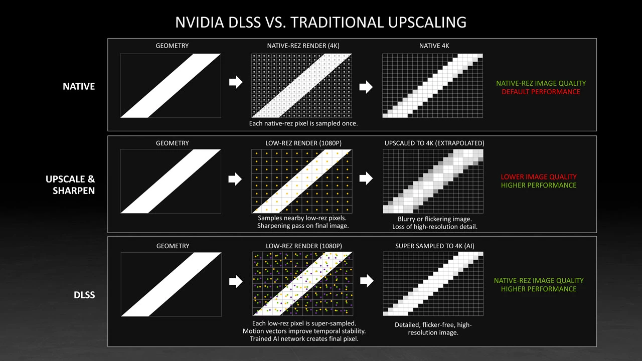 كما أشرنا منذ قليل، تعمل تقنيات تعظيم الصورة الموجودة حالياً على نفس المبدأ، غير أن تقنية DLSS تزيد عن البقية في أنها تستخدم الذكاء الاصطناعي لصقل عملية التحسين بشكلٍ أفضل، لذا دعوناً إذاً نوضّح هذه النقطة بشكلٍ أفضل.
