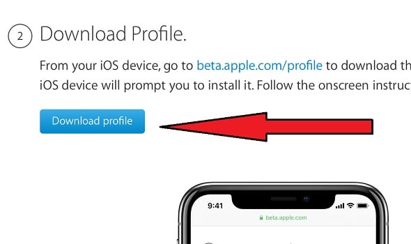الخطوة التالية هي التبديل إلى جهاز iOS الخاص بك وفتح beta.apple.com/profile ، نزّل الملف الشخصي ، ثم انتقل إلى تطبيق الإعدادات وتحقق من وجود تحديثات، يجب أن تظهر النسخة التجريبية وتسمح لك بتثبيتها.