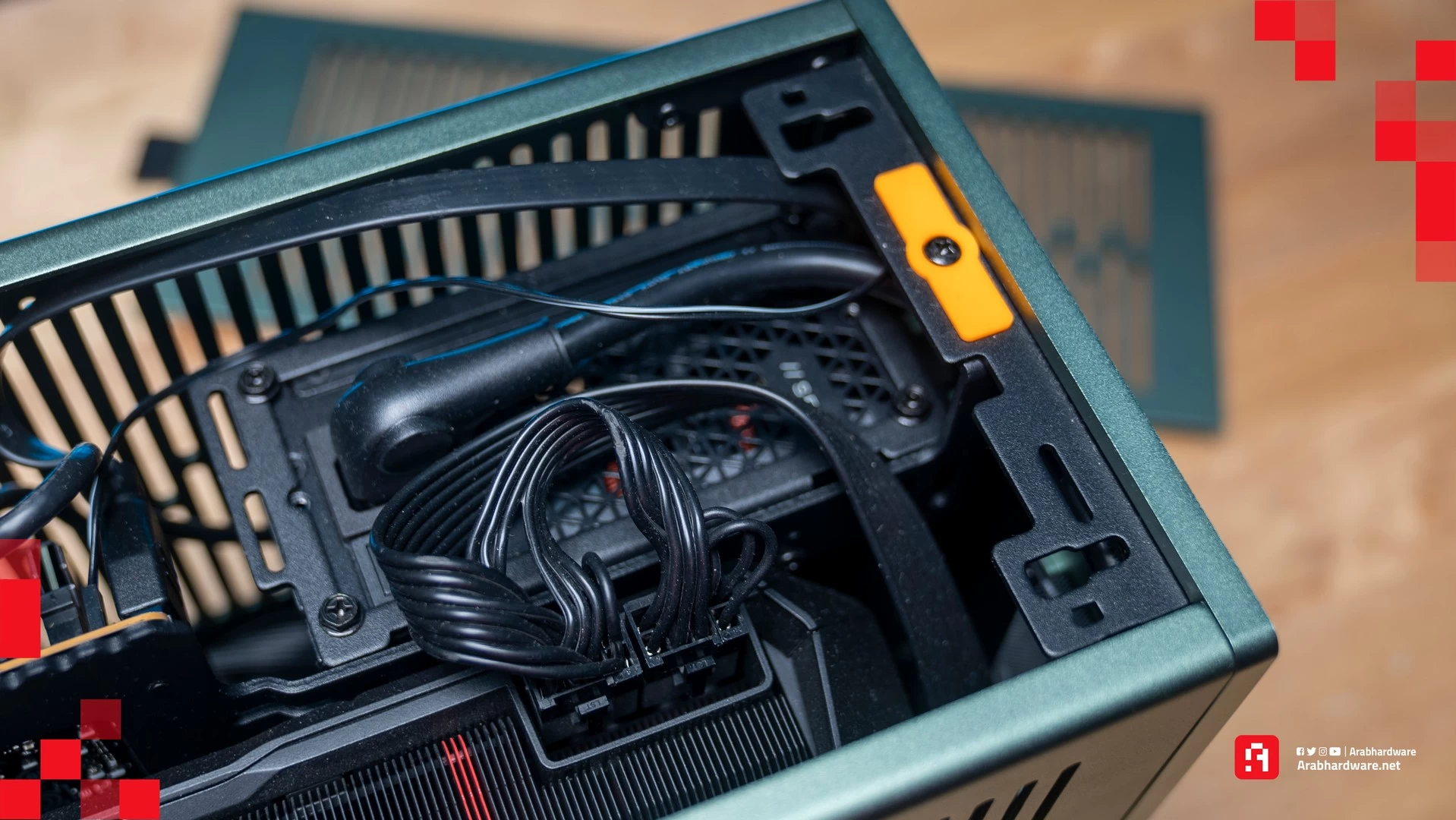 الأمر الآخر المُثير للاهتمام هو أن هذا الباور يوفر دعم لمعيار الجيل الجديد ATX 3.0، مع كابل PCIe 5.0 12VHPWR مُرفق مع الباور سبلاي، وهذا يعني أنك تستطيع تركيب كروت الشاشة الحديثة من NVIDIA بدون الحاجة لمحوّلات أو وصلات زائدة. وكما هو متوقع، يوفّر الباور سبلاي دعم معيار كفاءة 80+ Gold الذهبي، وهو ما يعني أنك أمام كفاءة تصل إلى 90%.
