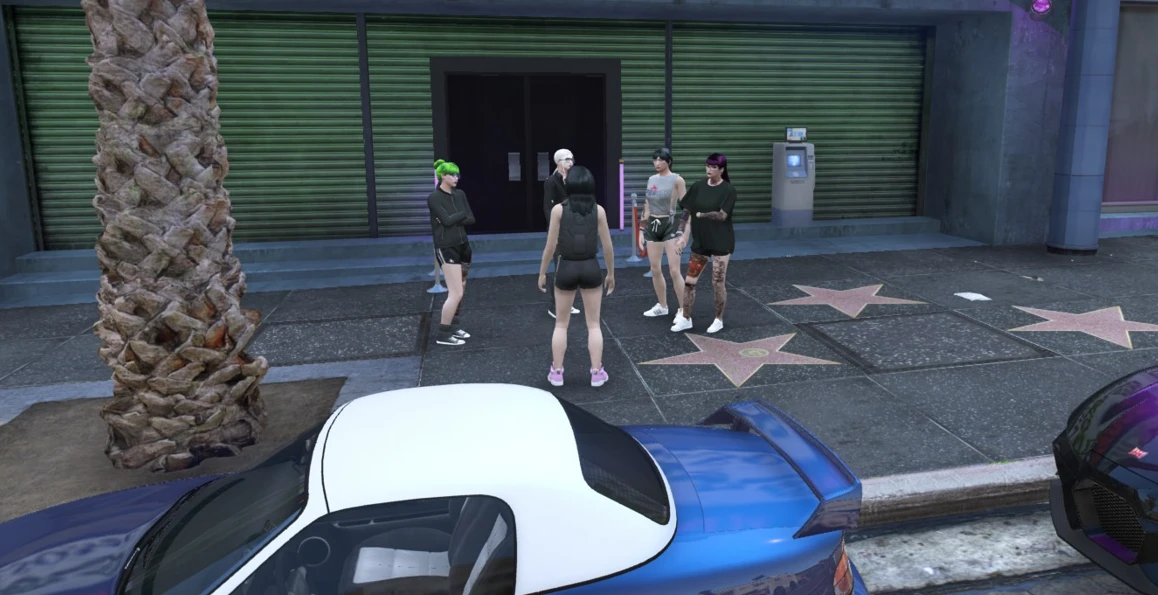 قادنا المشرف في بث مباشر، في الصباح الباكر لضمان الخصوصية، لمتابعة شخصية أنثوية داخل اللعبة أثناء تجولها في المدينة. قادت الشخصية سيارتها إلى محطة الوقود، ثم غازلت الشخص الذي يلعب دور العامل، بعد ذلك زارت سوقًا وتكرر الفعل مع شخصية أخرى، ثم توجهت إلى متجر الوشوم، واستمر الأمر بهذه الطريقة حتى تعرف الشخصان على بعضهما، وبدأت عملية تحويل الأموال بينهم.