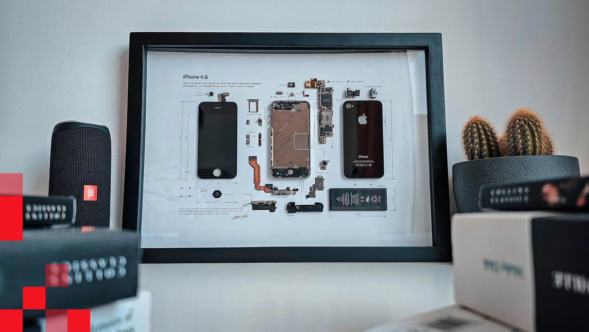 هاتف iPhone 4s كان نقلة هامة في المجال التقني، فكانت بداية ظهور المساعدات الصوتية وتطبيقات الدردشة، وحتى من الناحية التصميمية، فيُمكن وصفه بالتحفة الفنية (أو التقنية في هذه الحالة)، وفي الحقيقة، يُمكنك فعلياً أن تزين غرفتك بإطار يضم 40 قطعة من الهاتف، ملصوقة على خلفية بيضاء مساحة A3، وهي متاحة عبر متجر «ياياستيشن» في الإمارات.