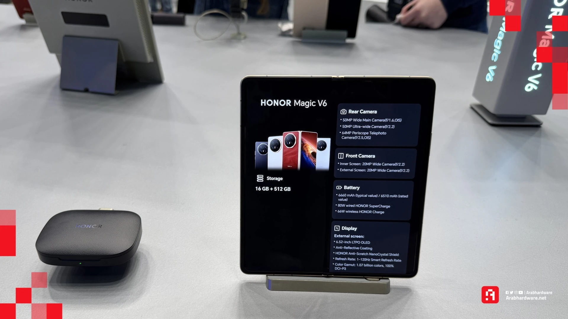 في حدث MWC26 أضافت هونر في إلى تشكيلة أجهزة الحاسب اللوحية جهاز MagicPad 4 النحيف للغاية (سُمكه 4.8 ملم فقط) والخفيف الوزن (450 جرامًا)، الجهاز الموجه للإنتاجية والترفيه ويعتمد على شريحة المعالجة Snapdragon 8 Gen 5 القوية، ويأتي بشاشة OLED قياس 12.3 بوصة بدقة 3K (3000×1920 بكسل) تدعم معدل تحديث يصل إلى 165 هرتز، ممّا يجعله مثاليًا لمشاهدة الفيديوهات والألعاب بانسيابية عالية.