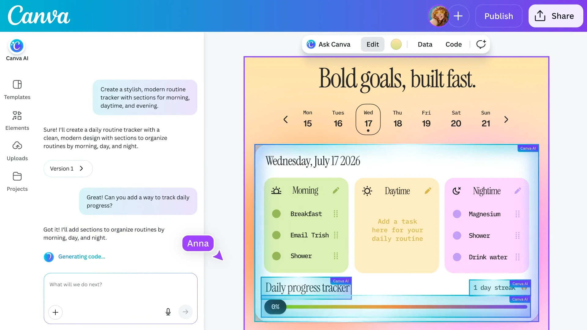 بتجرد كامل، تُعد منصة تصميم Canva AI 2.0 الخيار الأول لك طوال عملية تطوير الفكرة الخاصة بك للوصول إلى النتائج التي كنت تطمح لها. فهو يفهم القصد، ويتعامل مع الطلبات المعقدة، ويتخذ إجراءات منسقة عبر التصميم بأكمله وكل ذلك دون مقاطعة للتعديلات التي تقوم بها لعملك. وعندما ترغب في تولي الزمام والتحرير يدويًا كتدخل شخصي منك، فإنه يتيح لك ذلك.