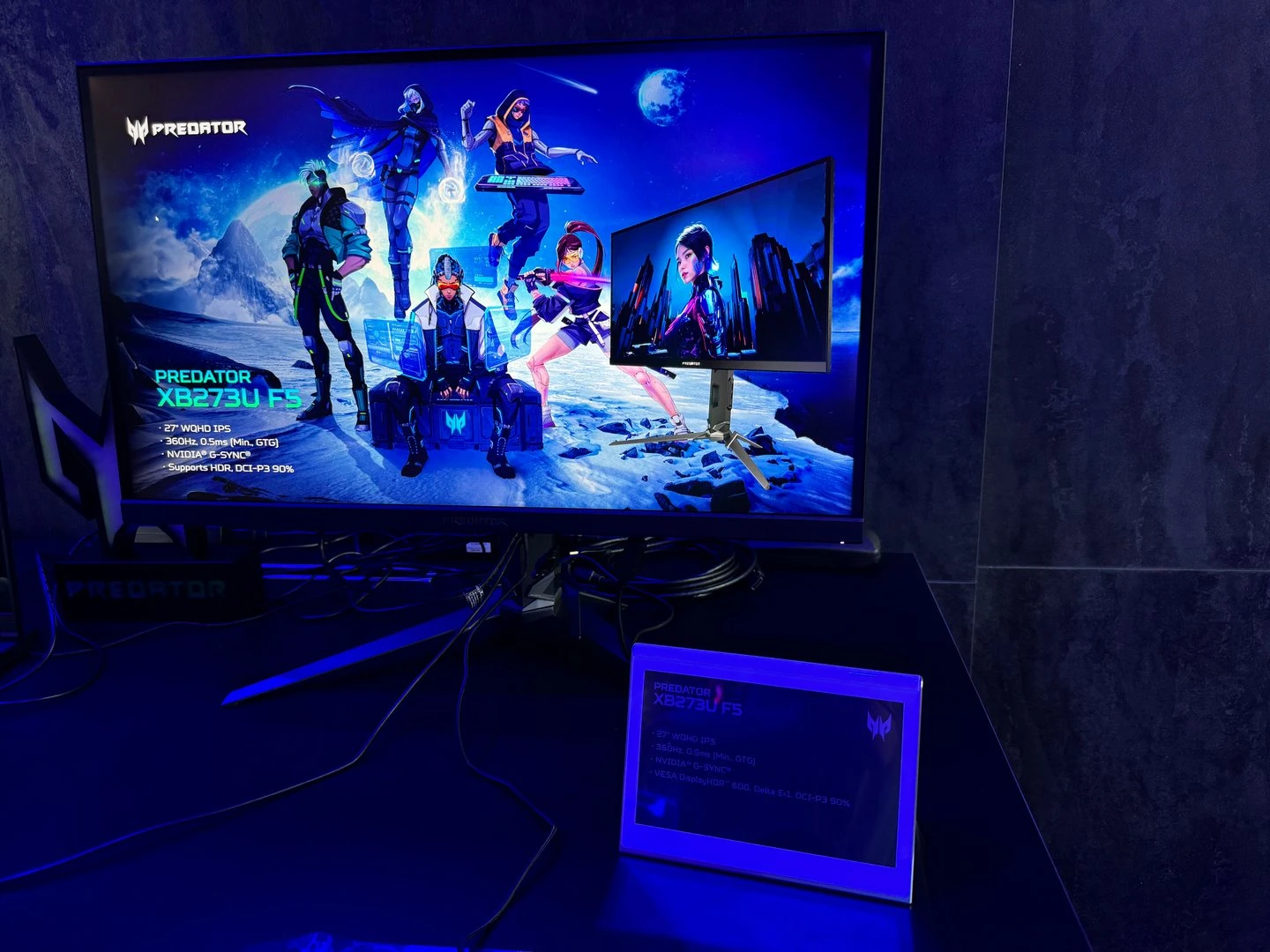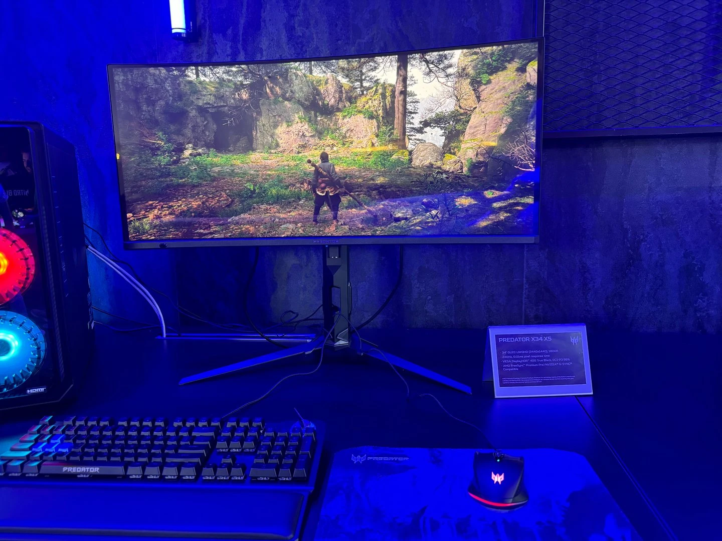 شاشة Predator X34 X5 الجديدة كانت مُتواجدة أيضًا، وهي شاشة بلوحة OLED فائقة العرض Ultra Wide وبحجم 34 بوصة، مع دقّة عرض 1440p، ومُعدّل تحديث 240Hz بزمن تأخير 0.01ms. كل هذا مع دعم تقنية AMD Freesync، و G-Sync بأحدث إصداراتها، وتغطية ألوان DCI-P3 بنسبة 99%.