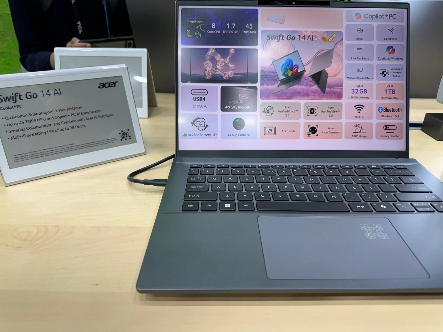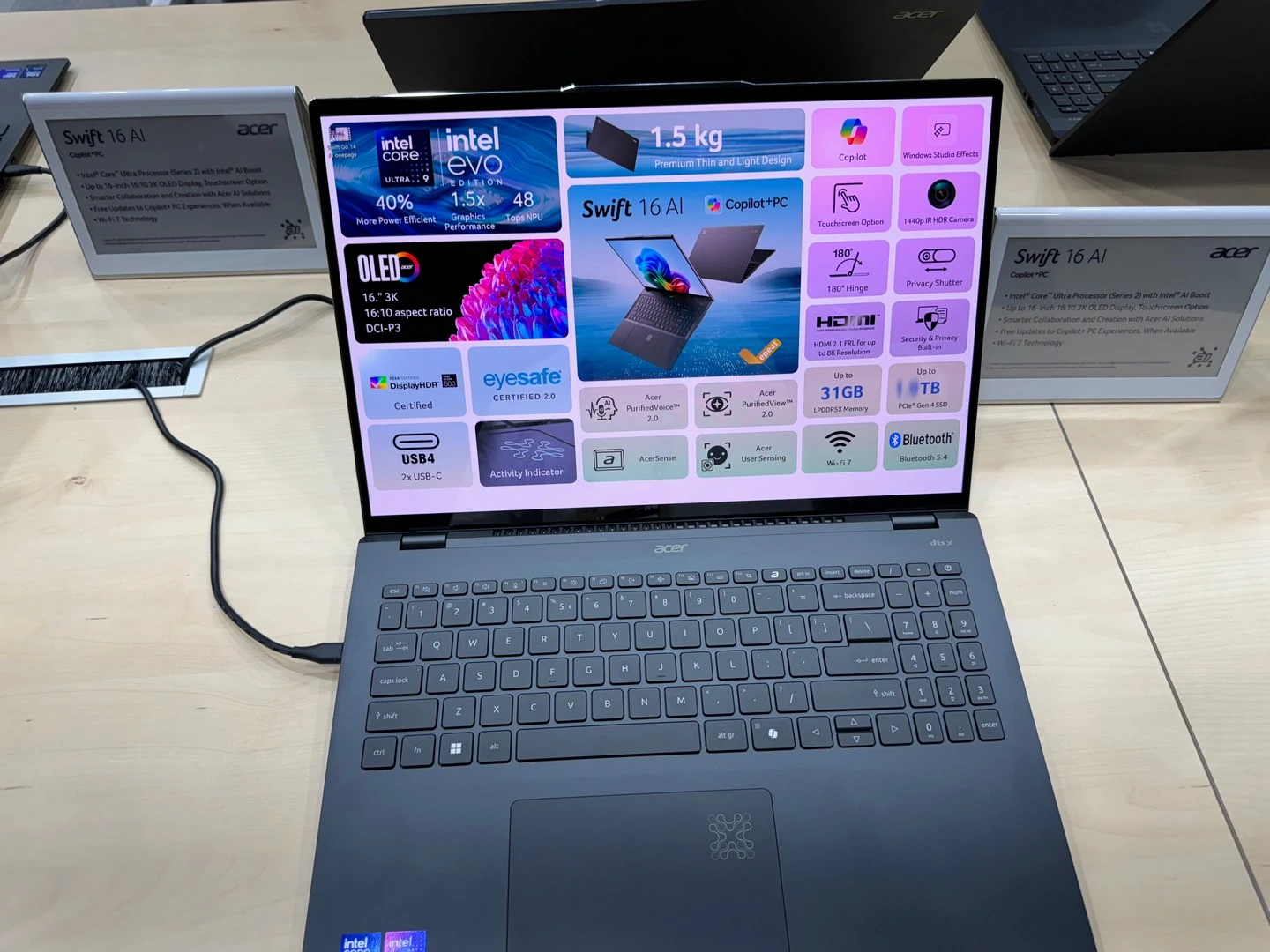 كما وقد أعلن تشين عن توسيع خط أجهزة اللاب توب Swift AI مع أجهزة جديدة تتميز بشرائح Lunar Lake الجديدة من Intel. هذا بالإضافة إلى الأجهزة المزودة بمعالجات Snapdragon X Plus ثمانية الأنوية من Qualcomm، وحتى معالجات Ryzen AI 300 من AMD؛ وذلك بالطبع للمُنافسة في سوق أجهزة الكمبيوتر الموجّهة للذكاء الاصطناعي ذات البطّاريات طويلة الأمد.