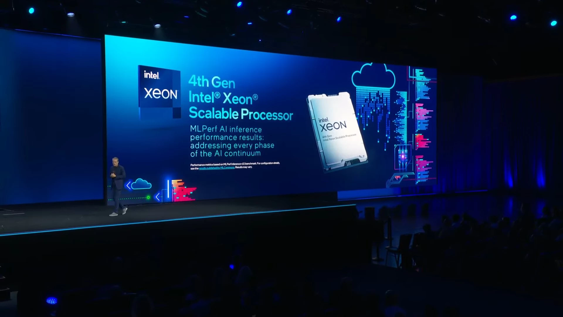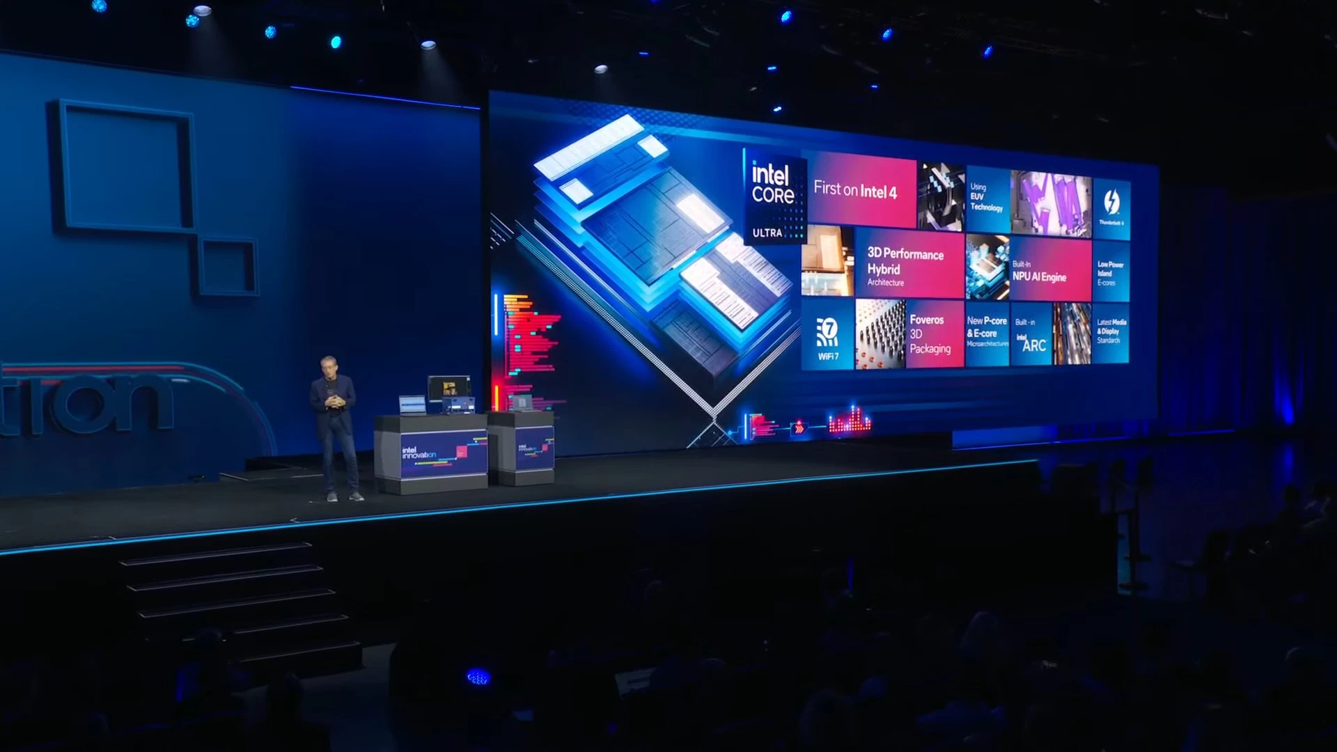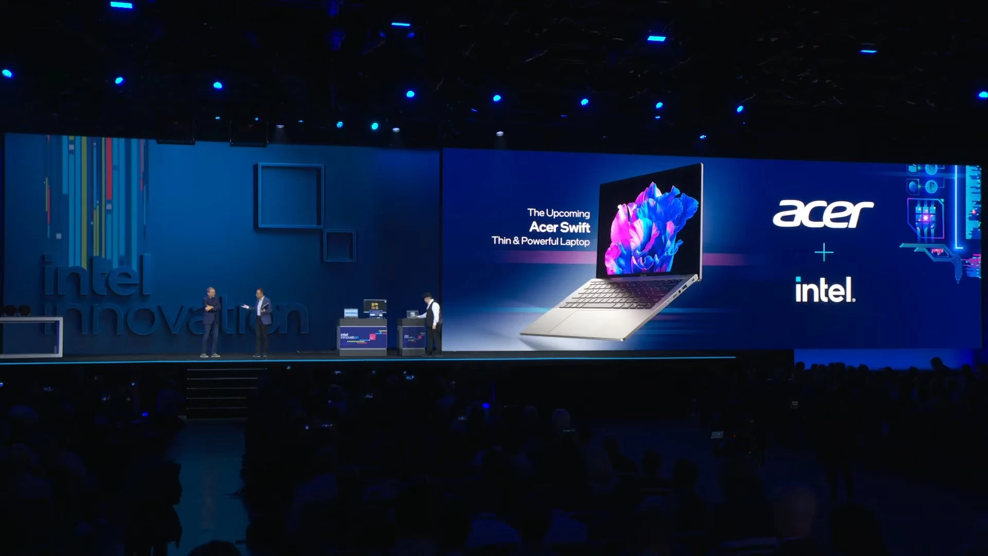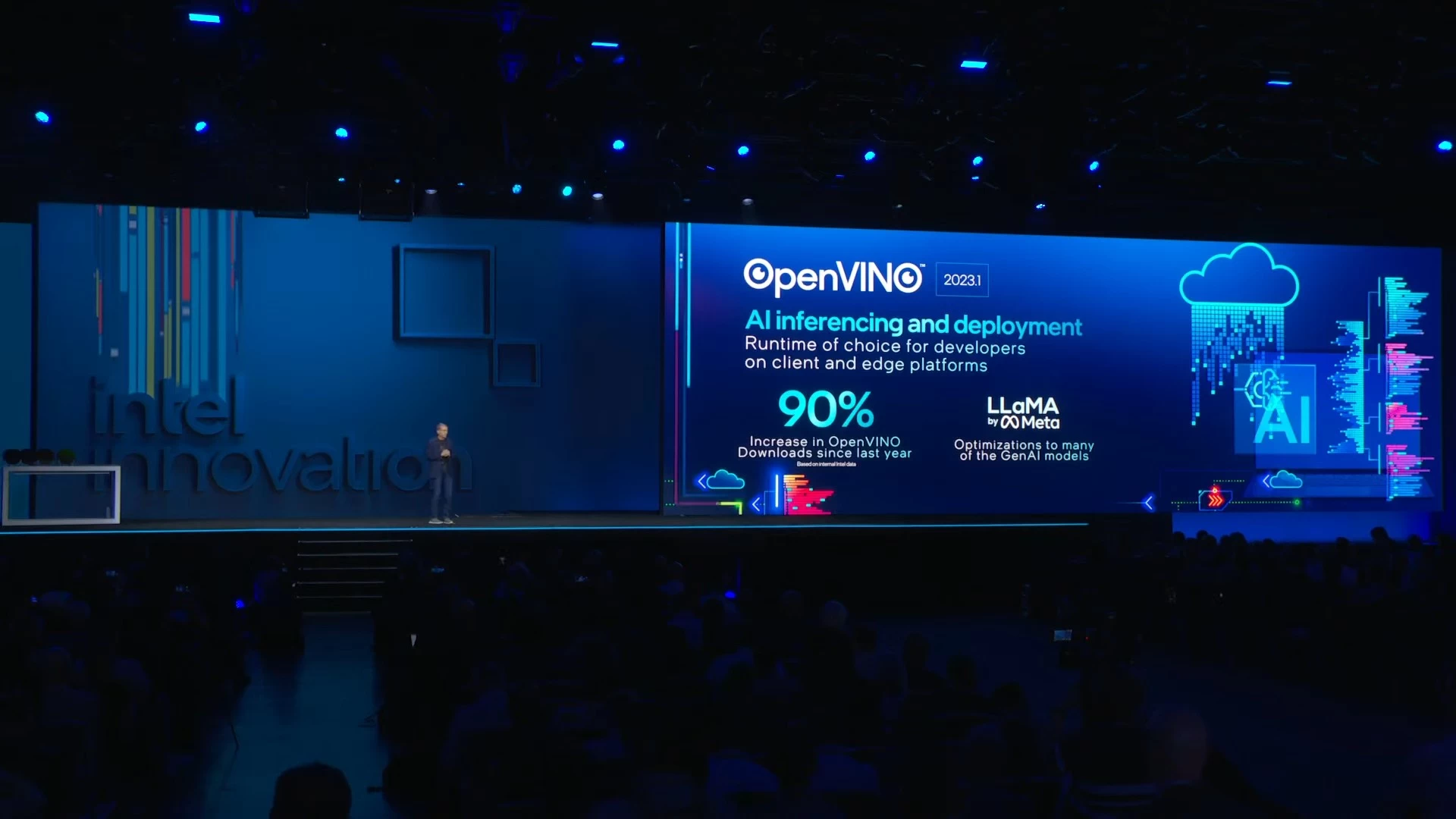 في العرض التوضيحي، صعد أحد ممثلي شركة Acer على المسرح ومعه أحد أجهزة الكمبيوتر المحمولة الأولى التي تعمل بمعمارية Intel Core Ultra. وباستخدام تطبيق يستفيد من نظام OpenVINO، تمكّن اللاب توب من إنشاء صورة مدعومة بالذكاء الاصطناعي بشكل فوري تقريبًا.