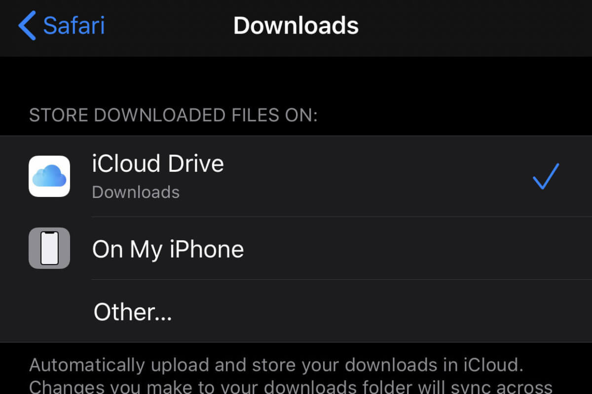 تحديد مكان حفظ الملفات المحملة عبر Safari