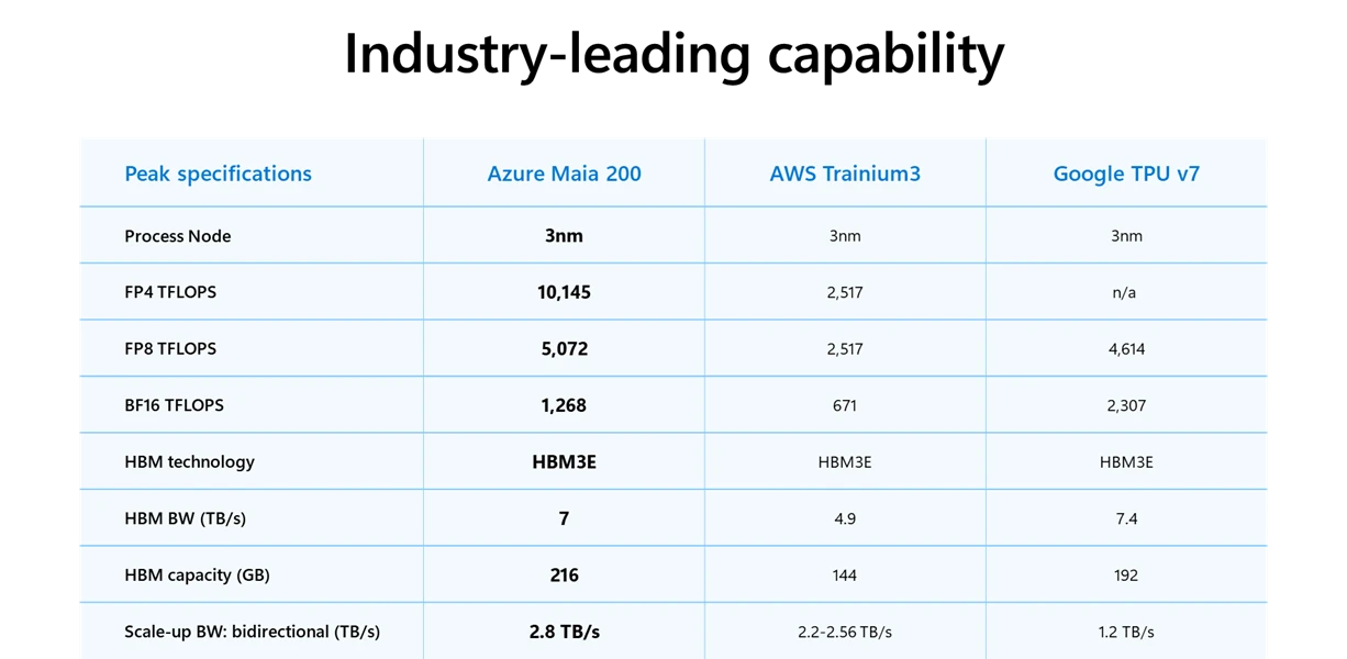 حملت مذكّرة الإطلاق التي نشرتها مايكروسوفت رسالة مباشرة إلى أبرز منافسيها في قطاع الحوسبة السحابية، وعلى رأسهم أمازون وجوجل. حيث تؤكّد الشركة بشكل صريح أن شريحة مايا 200: