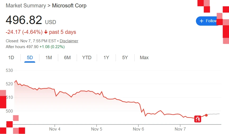 كان رد فعل الأسواق حاسما وسريعا. فقدت ميكروسوفت حوالي 440 مليار دولار من قيمتها السوقية في أسبوع واحد فقط بعد إعلانها عن زيادة الإنفاق على البنية التحتية للذكاء الاصطناعي، الذي تلاه انخفاض أسهمها بنسبة تصل إلى 12% عقب تقرير أرباح يظهر إنفاقاً قياسياً على الذكاء الاصطناعي دون عوائد واضحة كافية.