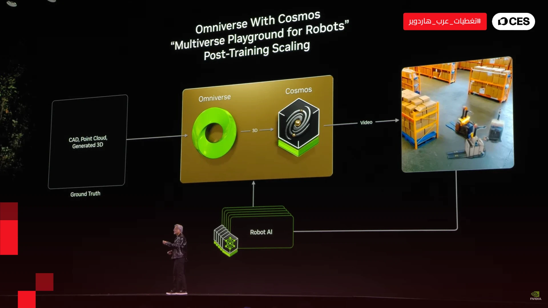 أعلنت NVIDIA أيضًا عن منصة Cosmos التي تُمثل تحولًا كبيرًا في كيفية تطوير الأنظمة الذكية. حيث تُتيح هذه المنصة للمطورين والباحثين إنشاء نماذج ذكاء اصطناعي ضخمة، بما في ذلك تطبيقات المركبات ذاتية القيادة والروبوتات؛ ومن ثم التطوير عليها بشكل أكبر للدرجة التي تجعلها تُحاكي الفيزيائية الحقيقية، ما يجعل دمجها في الروبوتات البشرية لتدريبها على فهم العالم الفيزيائي أمرًا أكثر سهولة من السابق.