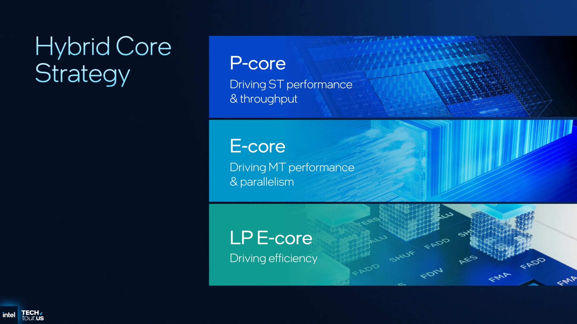 تُحدد هذه التصريحات بوضوح استراتيجية توزيع الأعباء، حيث ركزت إنتل على تخصيص تصميم كل نواة لخدمة مهام محددة بكفاءة قصوى. وبهذا، ترتقي الشركة بالبنية الهجينة ثلاثية المستويات إلى مرحلة متقدمة، ما تراه الشركة التطبيق الأمثل لهذا المفهوم المعماري.
