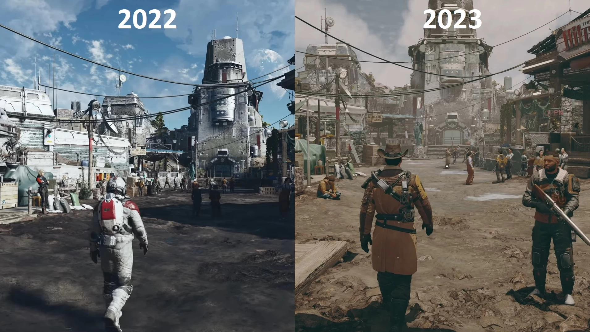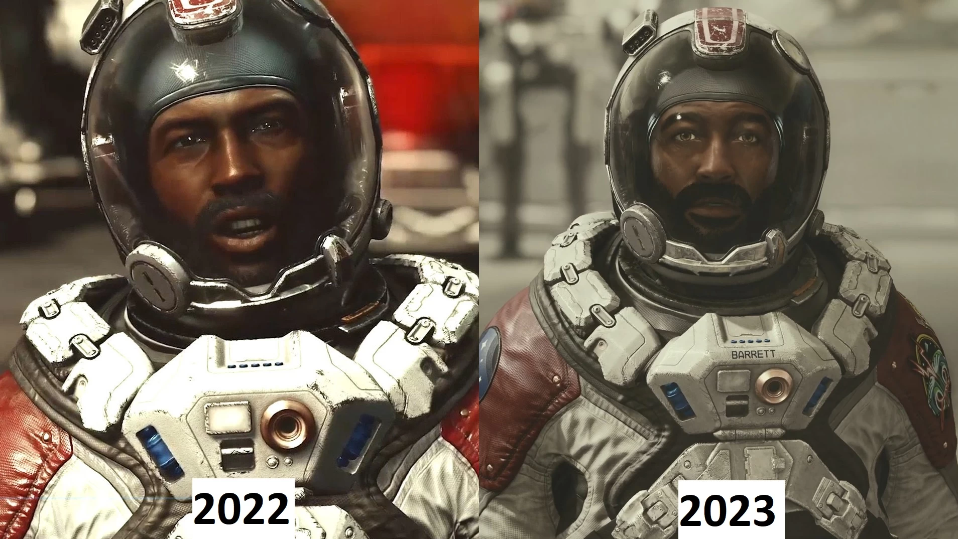أول شيء يمكن ملاحظته من الاستعراض الجديد هو أنه تم تحسين رسومات اللعبة بشكل عملاق خلال السنة التي تم تأجيل اللعبة فيها، والفضل بالطبع يعود لاستوديو id Software الذي ساعد على دمج عناصر الرسوميات الخرافية من محرك id Tech الخاص به لمحرك Creation Engine 2 التابع لاستوديو Bethesda. المنظر الذي خرجت به اللعبة في بث Starfield Direct يوضح أننا أمام واحدة من أفضل الألعاب تقنيًا ورسوميًا على الجيل الحالي حتى الآن خاصةً مع حجمها الشاسع.