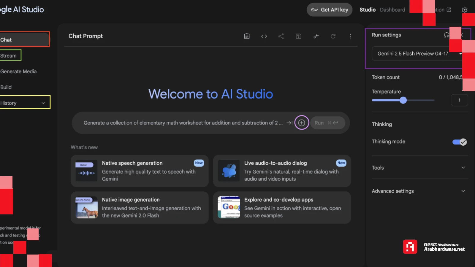 عندما يتخطى تطبيقك مرحلة عرض البيانات وتخزينها ويحتاج إلى اتخاذ قرارات ذكية، يتدخل Google AI Studio كمعمل اختبار دقيق. هنا تبني وتختبر التعليمات (Prompts) المعقدة لضمان استجابة الذكاء الاصطناعي بدقة للمدخلات قبل دمجها في تطبيقك عبر واجهات برمجة التطبيقات (APIs).