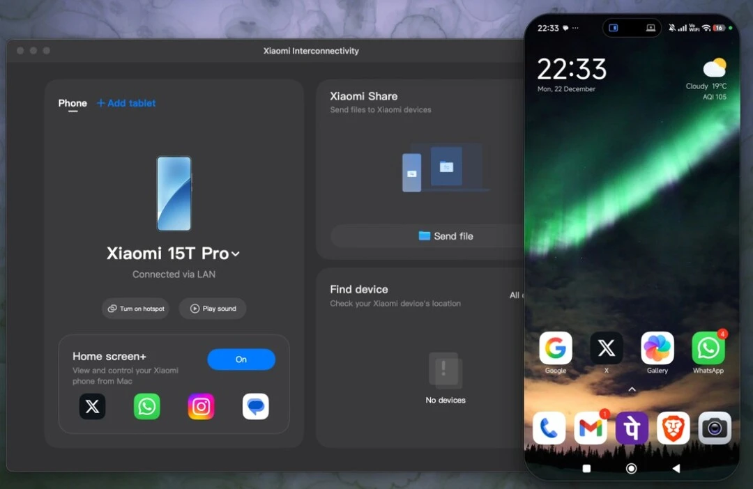 أكبر مخاوفي كانت العزلة، كيف سيتحدث هاتفي الغريب مع جهاز الماك بوك الخاص بي؟ هنا كانت المفاجأة التي جعلتني أبتسم بسخرية على سنوات الوفاء لأبل. اكتشفت تطبيق Xiaomi Interconnectivity، الذي وبضغطة زر واحدة على متجر تطبيقات الماك، سقط جدار حديقة آبل المسورة. فجأة، عادت ميزة الآير دروب تحت مُسمّى "Xiaomi Share". بل والأكثر إثارة، استطعت عكس شاشة هاتفي الأندرويد على الماك بوك وتشغيل تطبيقاتي وكأنها جزء أصيل من نظام macOS. لم أعد مضطرًا لاختيار نظام آبل المغلق، لقد استطعت أن أعيش في العالمين معا دون أي مشكلة.