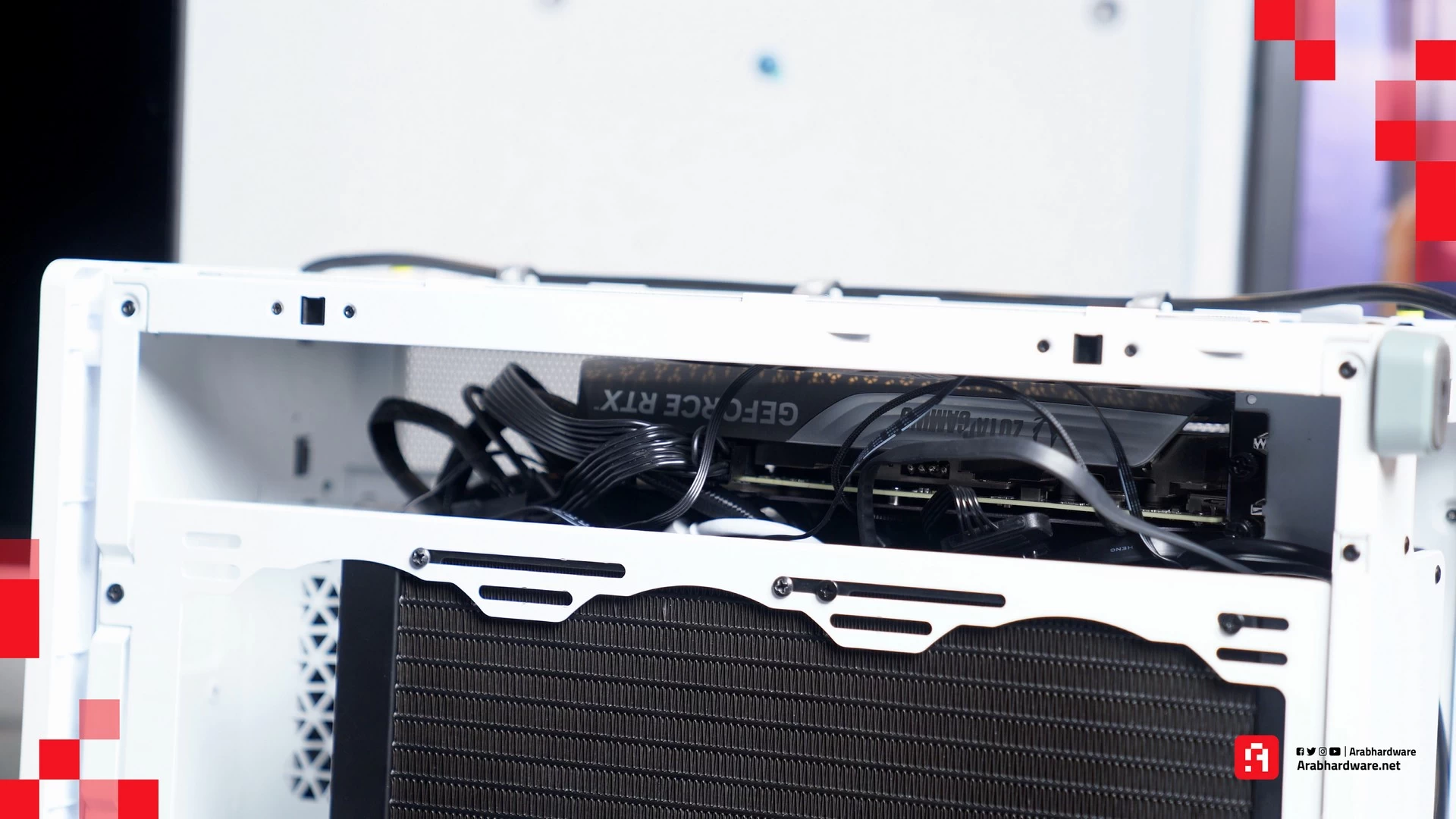 توفّر لك الكيس أيضاً القدرة على تركيب كروت الشاشة بالحجم الكامل، والتي تصل إلى 3 فتحات وطول حتى 365 ملم، بالرغم من عدم حاجتنا إلى ذلك مع كارت Zotac المميز الذي بين يدينا اليوم. هذا بالطبع إلى جانب دعم مزودات الطاقة من تصميم SF-L حتى 1000 واط (كما هو الحال مع الباور سبلاي الذي معنا).
