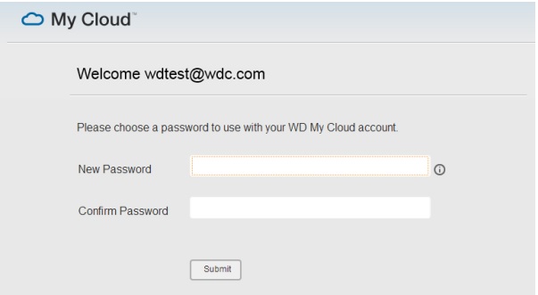 • بعد النقر على رابط التفعيل، فإن صفحة موقع My Cloud سيُفتح وسيطلب كلمة سر من أجل الحساب المكون حديثا.