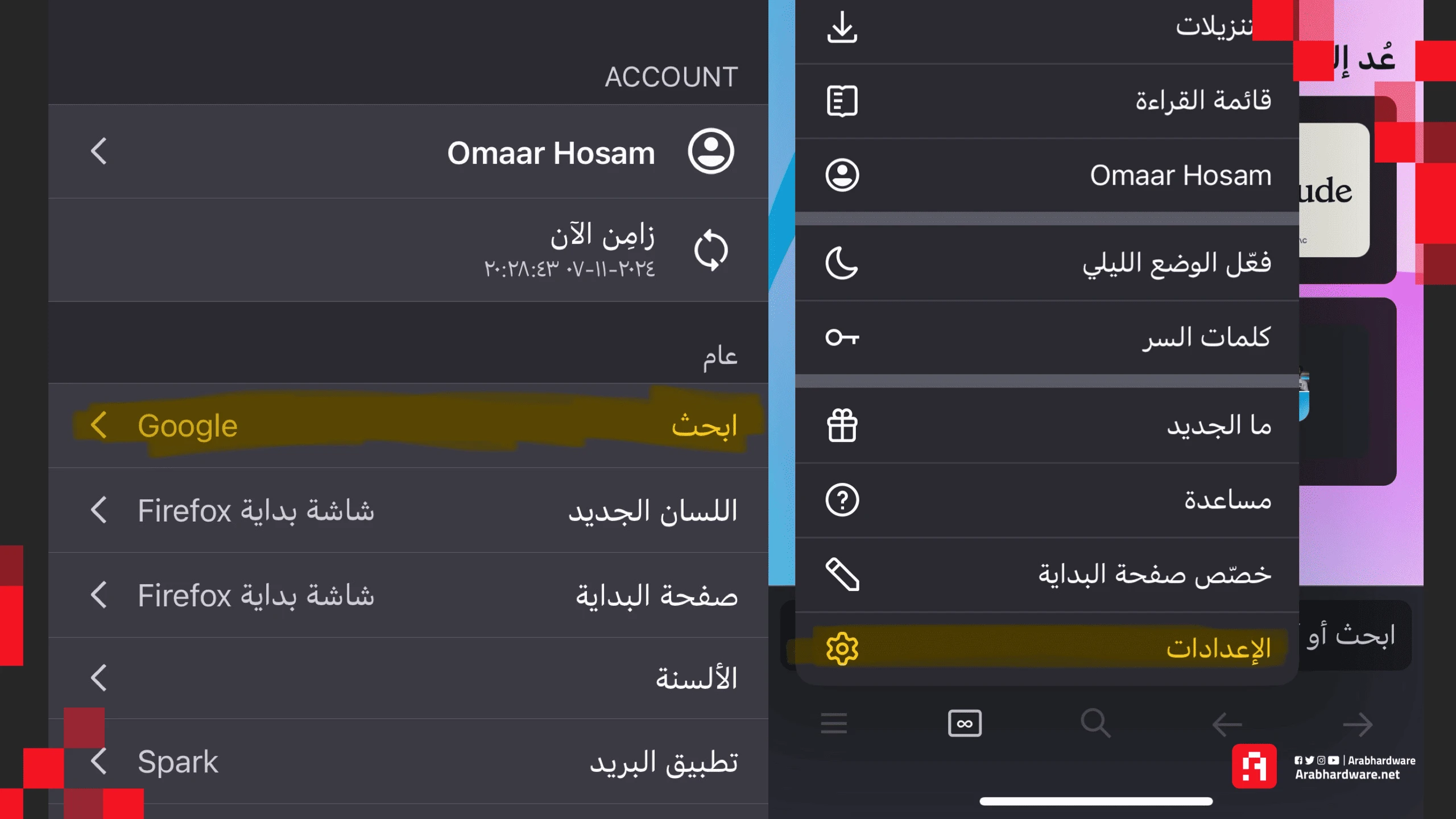 الطريقة الثانية إذا كنت تود جعل محرك شات جي بي تي هو محرك البحث الافتراضي على الهاتف أو على متصفح غير مبني على نواة كروميوم مثل فايرفوكس، وسأشرح على متصفح فايرفوكس على جهاز الآيفون، مع العلم أن المتصفحات تختلف في مكان وضع هذا الخيار ولذا من الأسهل البحث بـ Search engine في صفحة الإعدادات.
