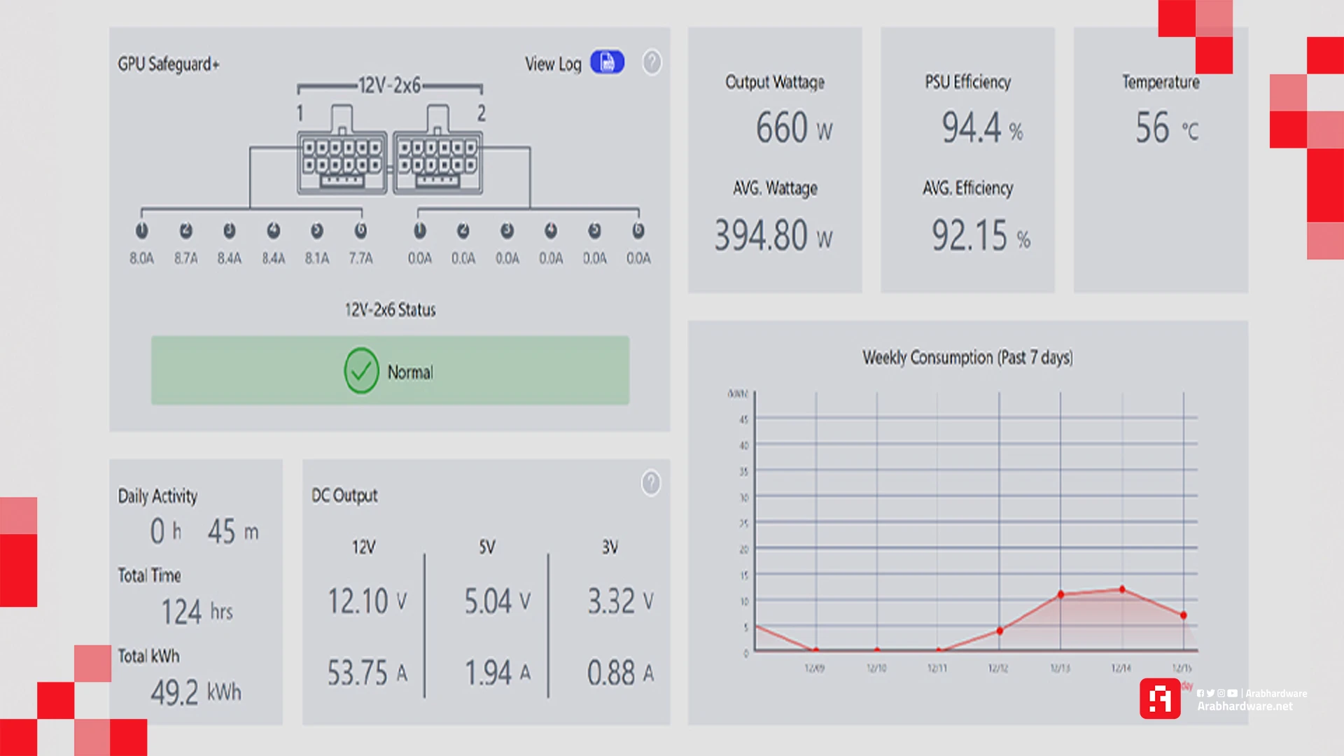 تدعم اللوحة ذاكرة DDR5 بسرعة تتجاوز 9000MT/s، مع نظام طاقة قوي يشمل 24+2+2 مرحلة طاقة بقدرة 110A VRM، مع مشتت تبريد Matrix المخصص لدوائر طاقة اللوحة لتخفض درجات الحرارة بمقدار 8.5 درجة مئوية.