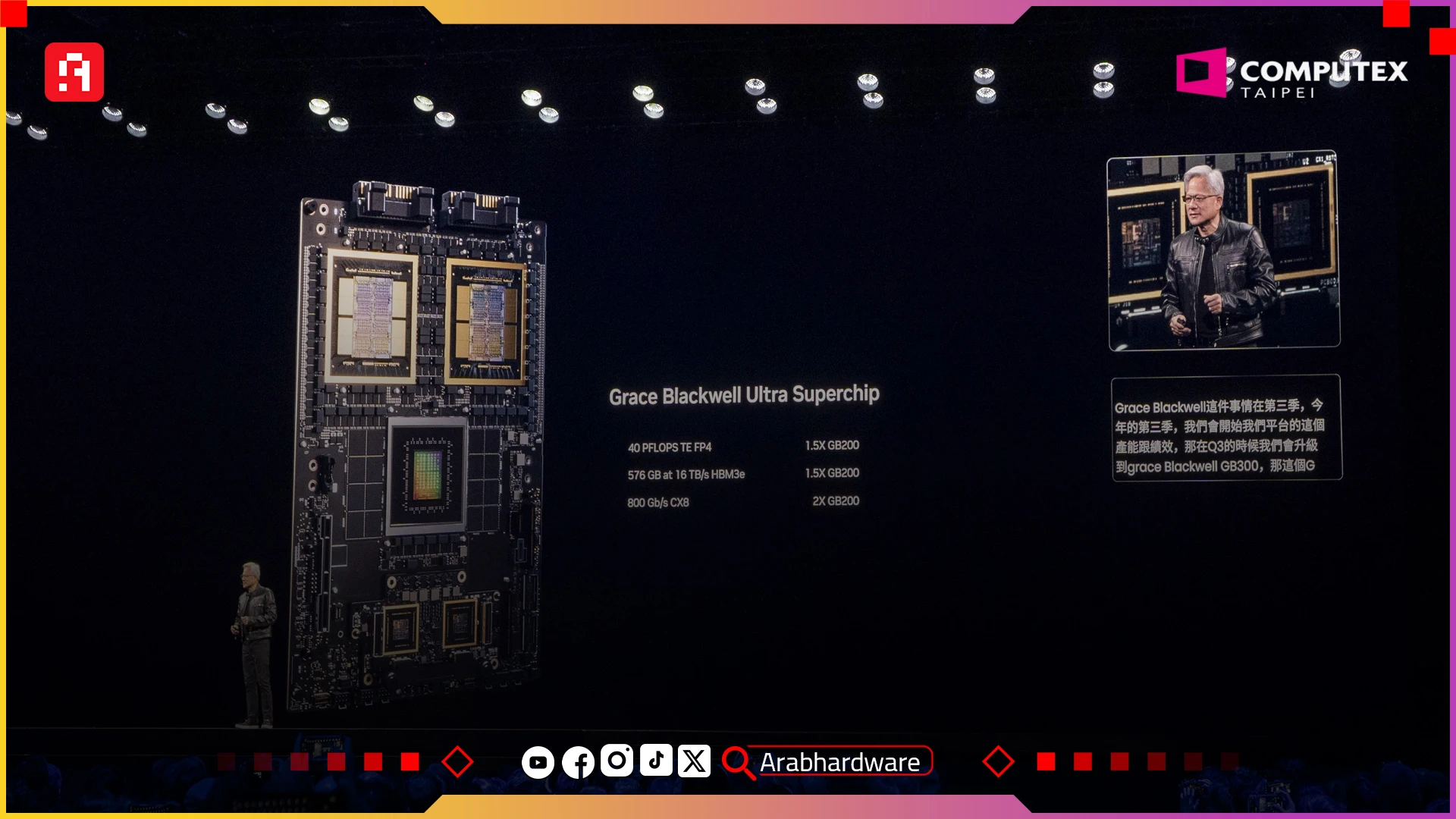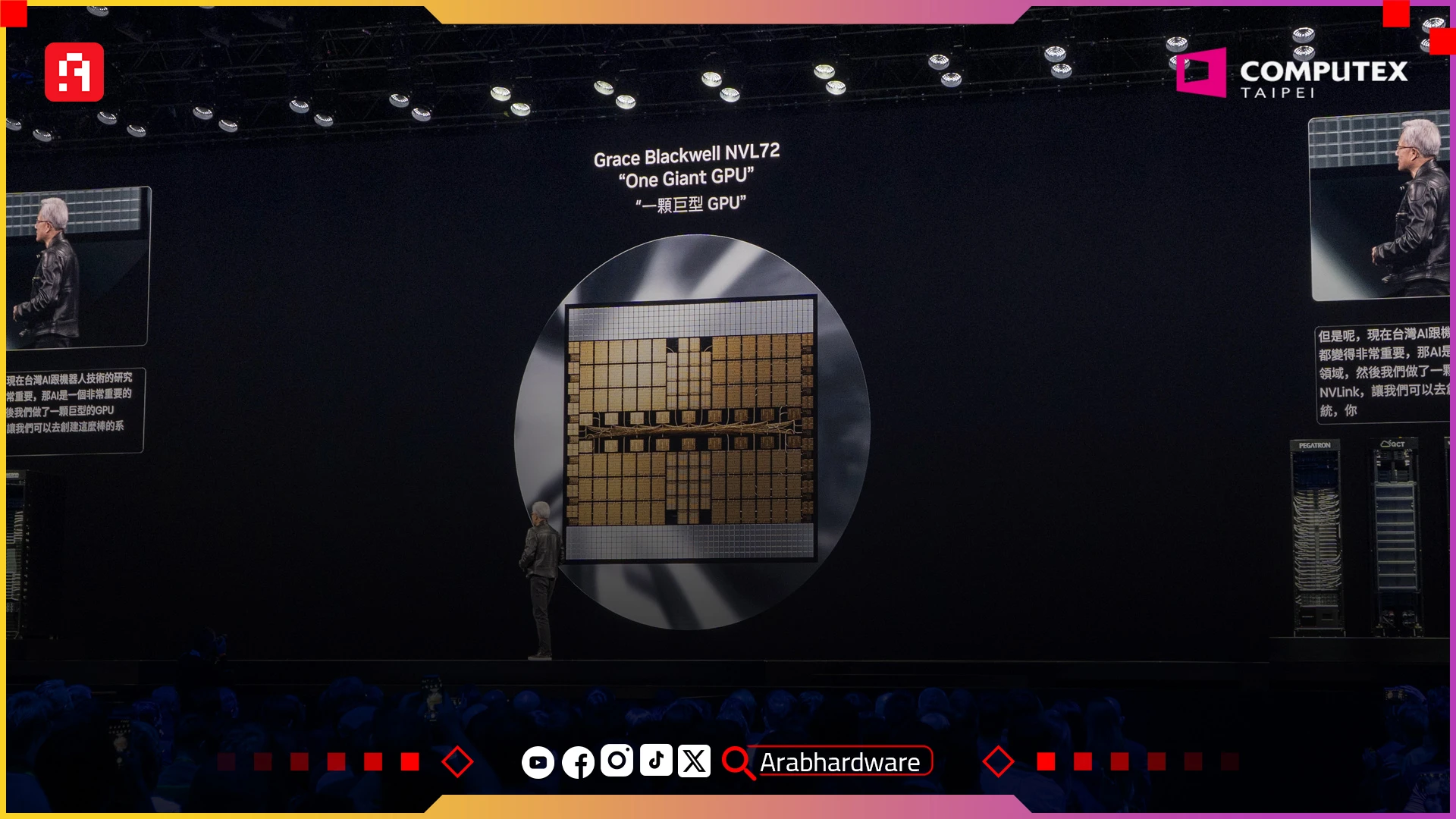 صعدت إلى المسرح شريحة Grace Blackwell الجديدة فيما بدا وكأنه مشهد سينمائي، حرفيًا، حيث ارتفعت من الأرض أمام الحاضرين. وعُرض فيلم وثائقي قصير أنتجه فريق Nvidia عن مراحل تصنيع الشريحة داخل مصانع TSMC وFoxconn، في تأكيد جديد على دور تايوان الحيوي في سلسلة توريد الشركة. الحديث تطرّق أيضًا إلى تقنية NVLink Spine، والتي تُعد العمود الفقري الجديد الذي يُمكّن مراكز بيانات Nvidia من معالجة المعلومات بسرعات مجنونة.