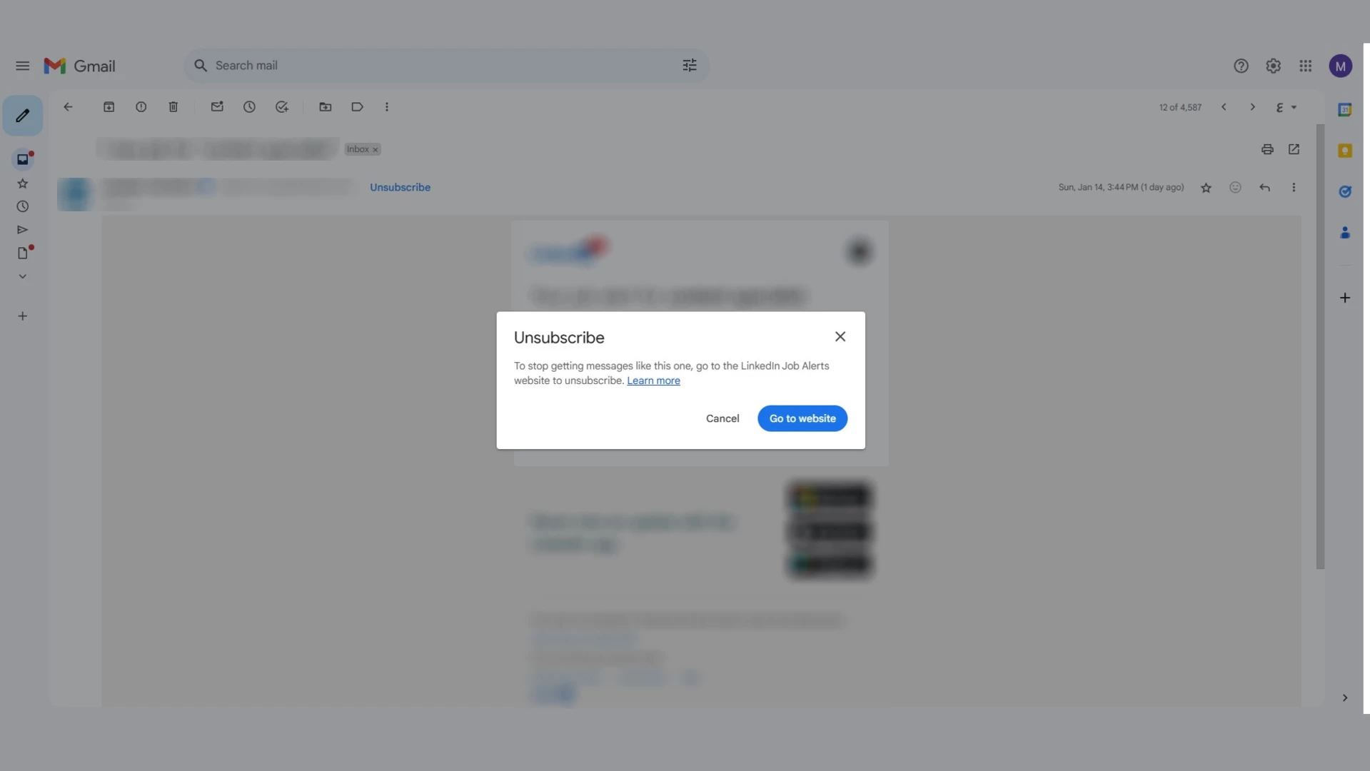 - بعد ذلك سيطلب منك التطبيق تأكيد إلغاء الاشتراك أو الذهاب إلى موقع المُرسل لإلغاء الاشتراك، وذلك في حالة اشتراكك مسبقًا في خدمة استقبال البريد الإلكتروني