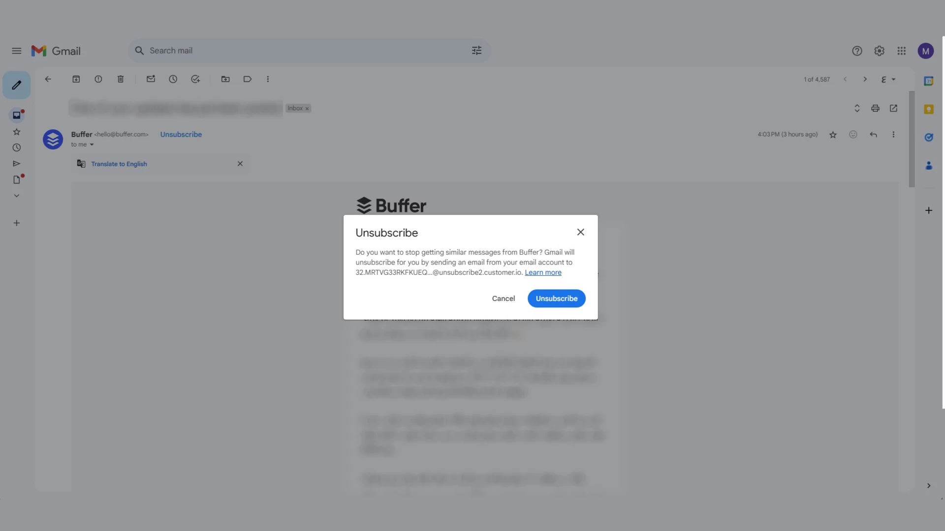 في ديسمبر الماضي، أطلقت جوجل تعديلًا على زر إلغاء الاشتراك في رسائل Gmail على المتصفح، وذلك لإبرازه بشكل واضح بعد أن واجه العديد من المستخدمين صعوبات في الوصول إليه. وتضمن هذا التعديل تغيير لون الخط في الزر ليصبح باللون الأزرق المميز، كما رفعت جوجل من حجم الخط، إذ كان الزر سابقًا يظهر بخط صغير مع لون رمادي فاتح. والآن، أضافت جوجل هذا الزر إلى تطبيق Gmail على الأندرويد.