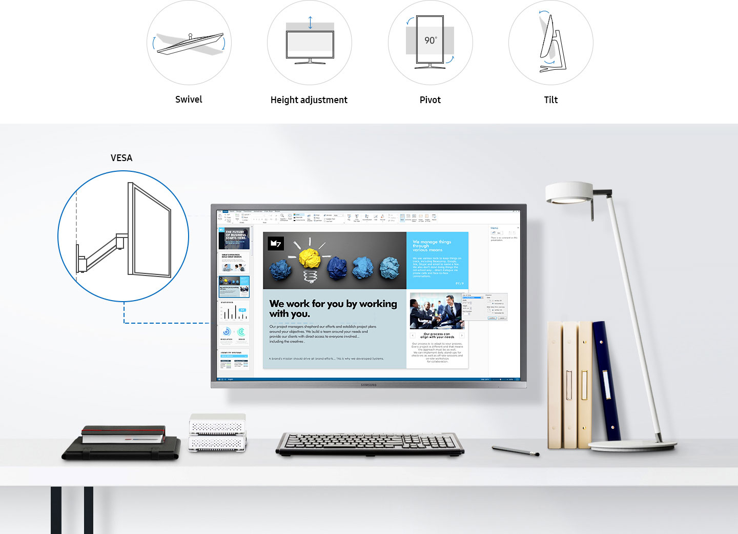 كما تدعم الشاشة نظام 100x 100mm VESA مما يسمح لك بتركيب الشاشة على جدران الغرفة. لا ننسى كذلك أن هذه الشاشة تدعم تقنية Quantum Dots لتمنحها تدرج لوني DCI-P33 بدرجات لونية واقعية, فهي أفضل من ناحية المساحة اللونية sRGB وتدعم 10bit لتوفير 1.07 مليار لون. للأسف لم تفصح الشركة عن أي سعر أو فترة التوفر لها رغم أنها معروضة اليوم في موقع سامسونج الرسمي.