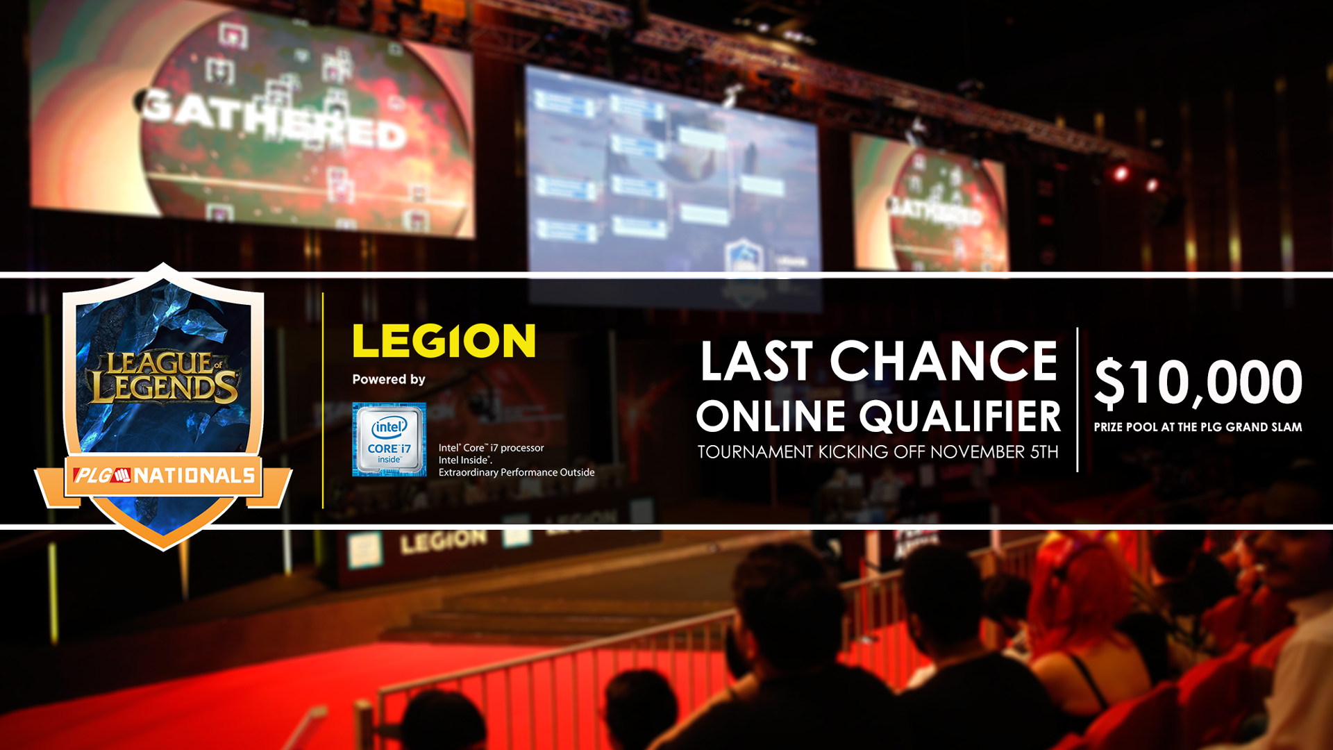 بمناسبة الذكرى السنوية الخامسة لشركة PLG, قامت PLG بفتح فرصة اخيرة و بوابة للاعبين الهواة لرفع من مستواهم الاحترافى. يقدم الموسم الثاني لبطولة PLG NATIONALS للعبة League of Legends مدعوم من معالج إنتل كور i7 حيث نبحث عن أفضل الفرق من جميع أنحاء المنطقة للفوز في نهاية المطاف والتقدم إلى بطولة PLG PRO TOUR و من ثم الى بطولة PLG GRAND SLAM للمنافسة على جائزة كبرى بمجموع 10.000 دولار بما فى ذلك صاحب لقب MVP فى البطولة سوف يحصل على جهاز لاب توب جديد هذا هو آخر دعوة للتصفيات عبر الإنترنت لحجز مكانا فى بطولة PLG PRO TOUR.