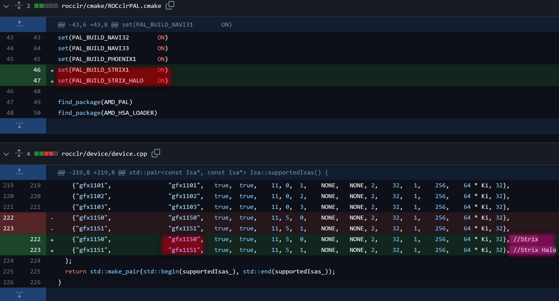 وعلى الرغم من أن هذه التحديثات لا تحمل أية تفاصيل دقيقة، إلا أنها توضح أن معرف GFX1150 مرتبط بـ "Strix Point 1"، بينما GFX1151 مرتبط بفئة "Strix Point Halo"، أو ببساطة Strix Halo. الجدير بالذكر هنا أن معالجات Strix Point هي فئة APU الأساسية الموجهة للجيل التالي من أجهزة الحواسيب المحمولة؛ في حين أن Strix Halo ستكون هي الفئة المنافسة لشرائح M2 الخاصة بشركة Apple. وستعتمد كلا الفئتين على أنوية Zen 5، مع نسخة محسنة من معالجات RDNA 3.5 الرسومية.