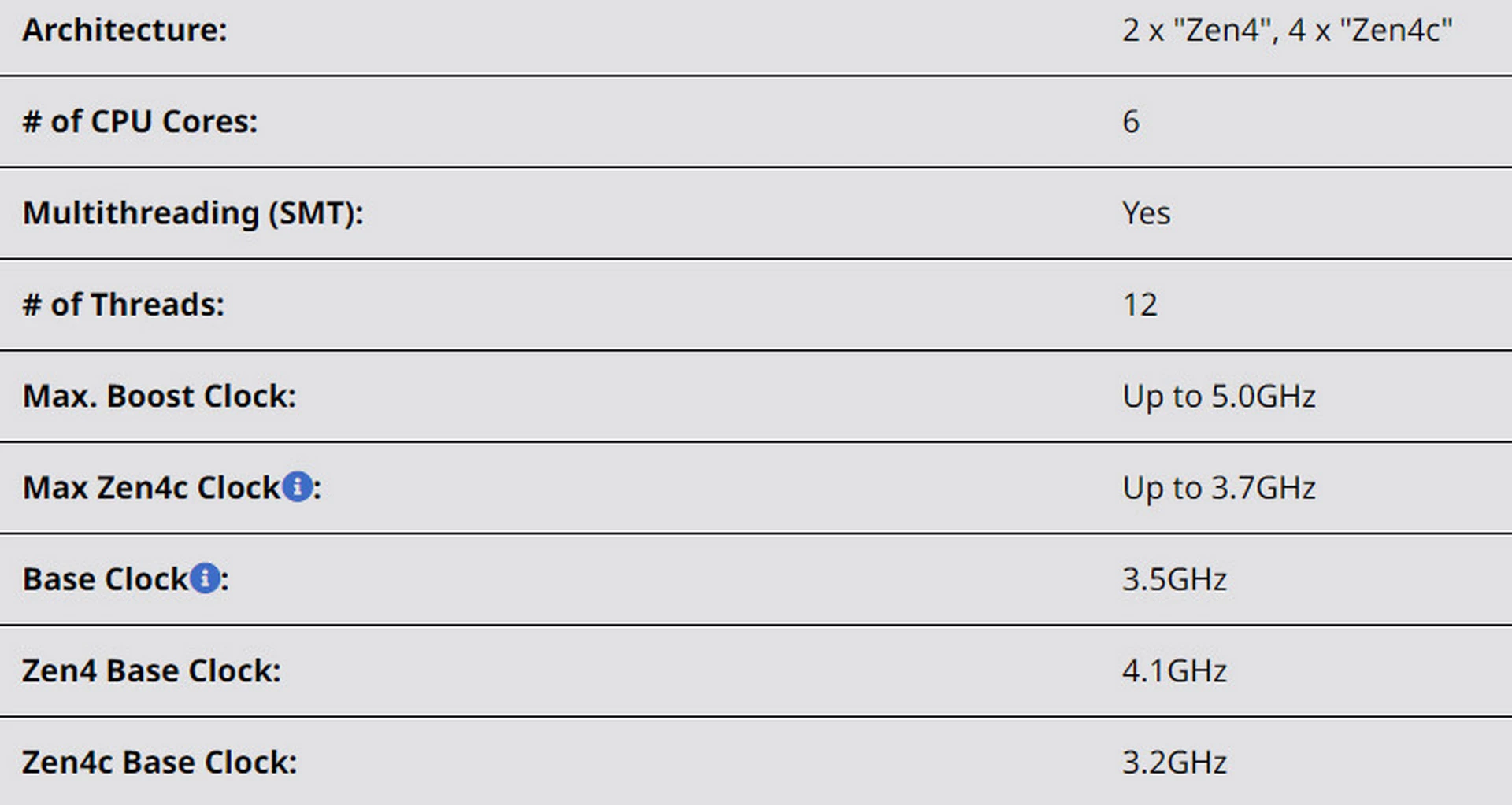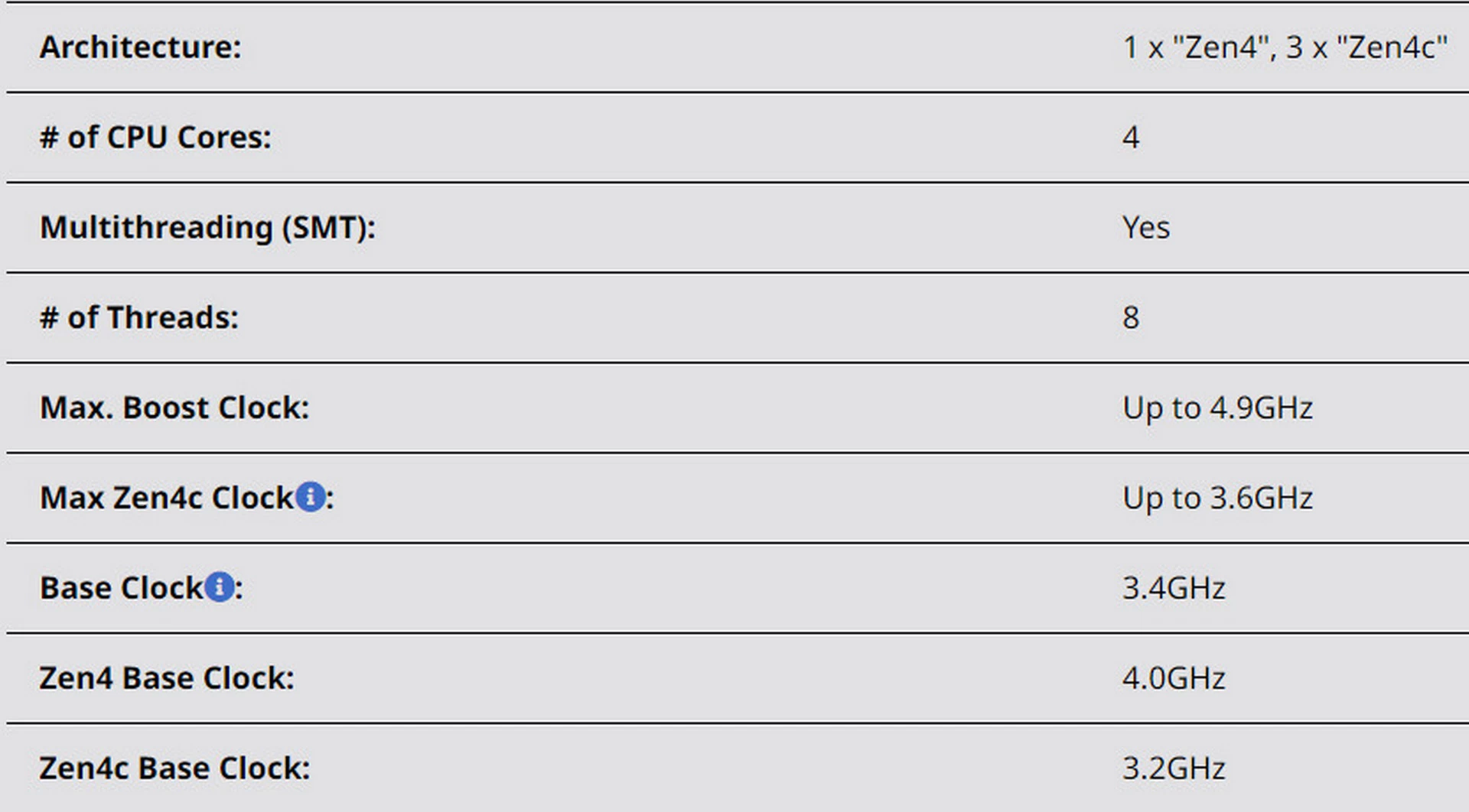 أنوية Zen 4c تأتي بترددات أقل من Zen 4 في معالجات Ryzen 8000G APU