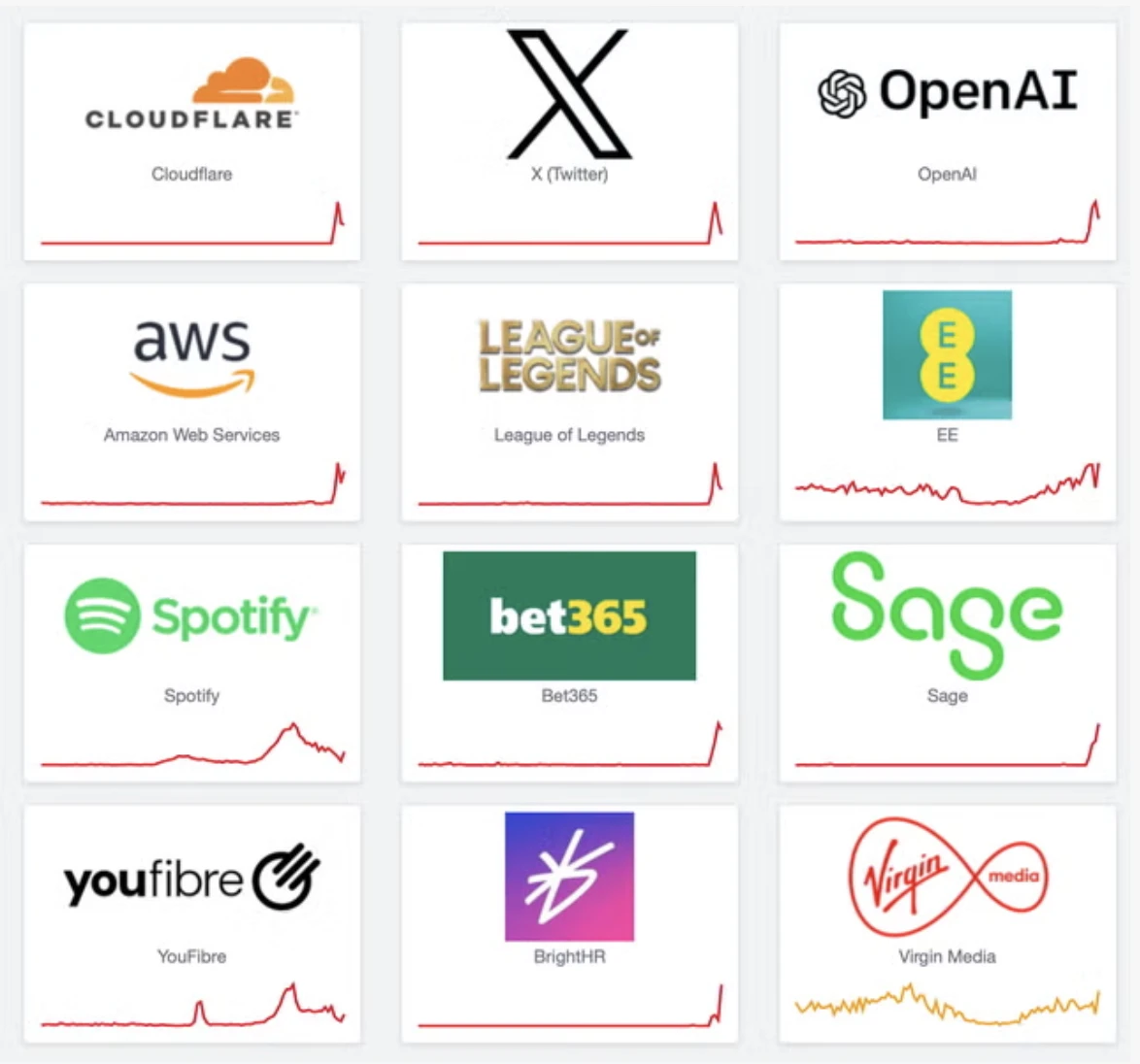 وبدأ العطل حوالي الساعة 01:30 ظهرًا بتوقيت مصر، حيث لاحظ مستخدمون حول العالم عدم قدرتهم على الوصول إلى منصات مثل X (تويتر سابقاً) و ألعاب مثل League of Legends، وظهرت رسالة خطأ تُشير إلى وجود "Internal Server Error" داخل شبكة Cloudflare.