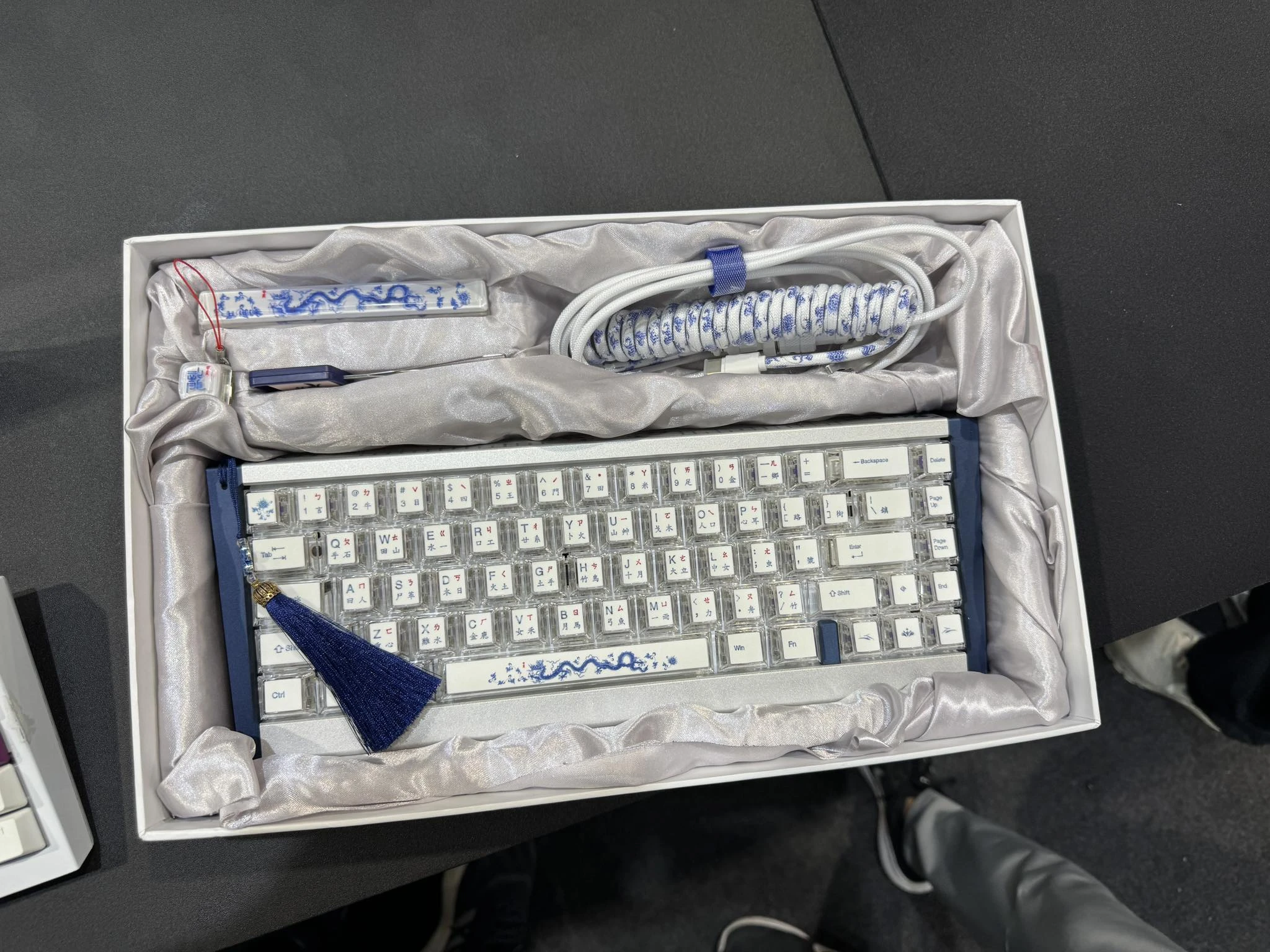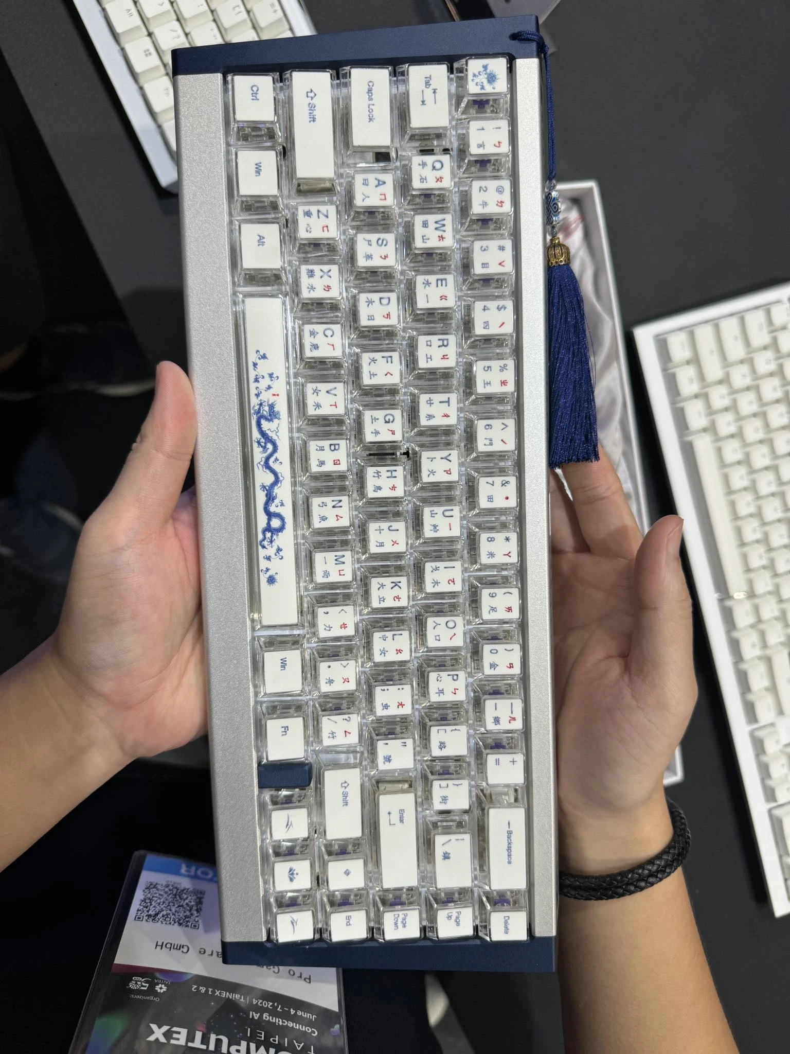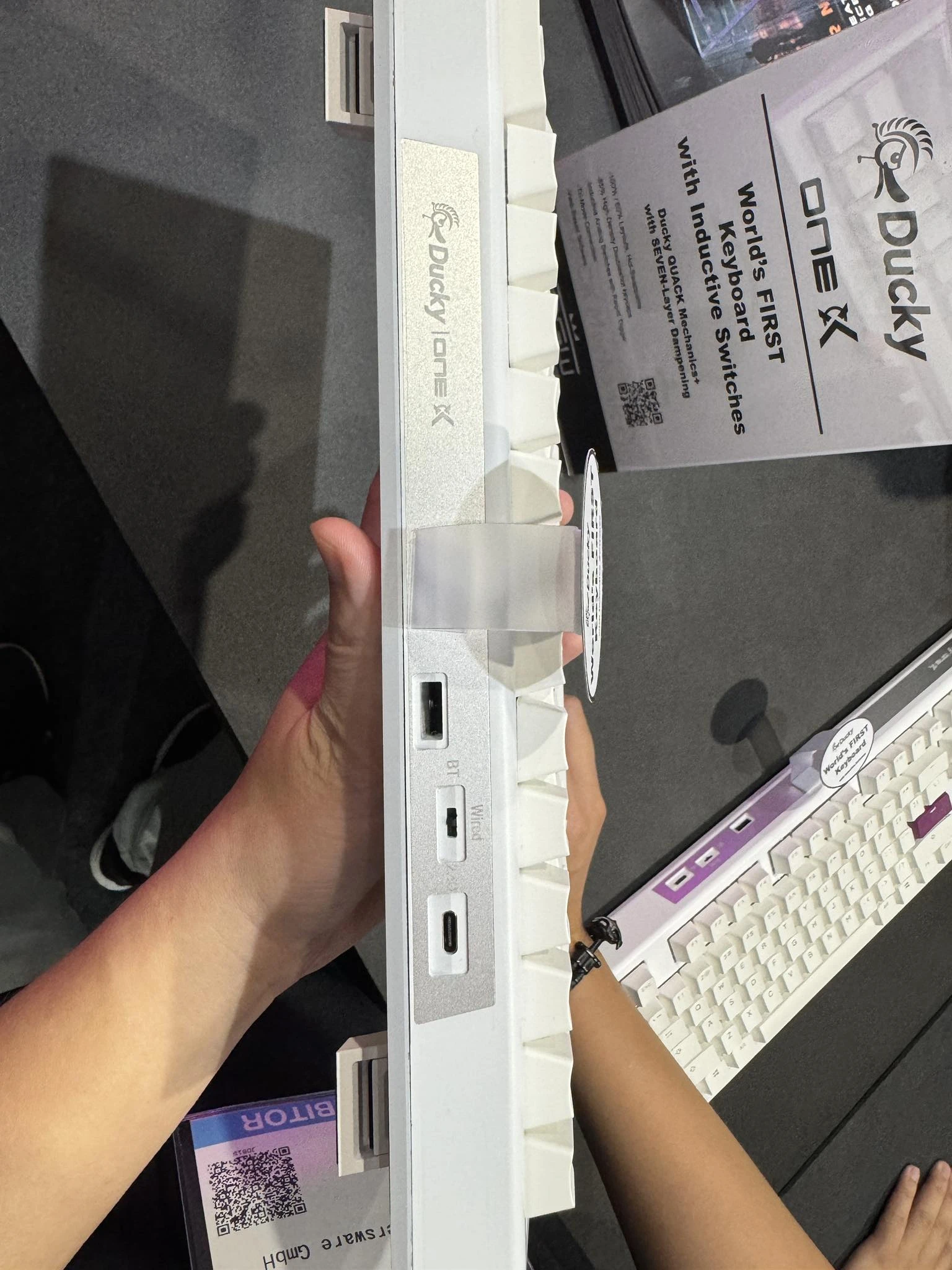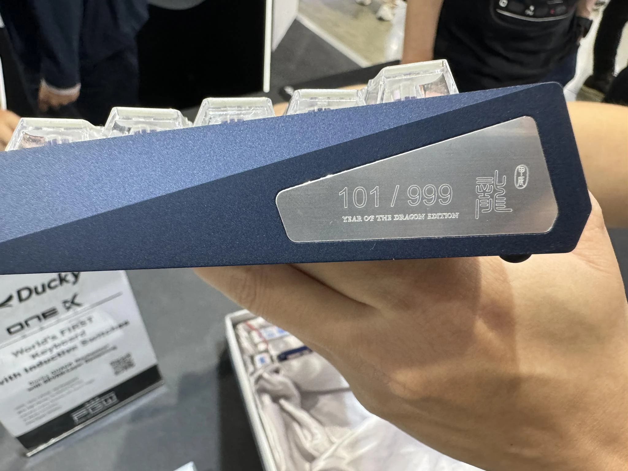 استعرضت Ducky أيضاً كيبورد Ducky One X 65% Year of the Dragon الخاصّة، والتي تُعتبر عمل فني فريد من نوعه بجسمها المصنوع من الألمنيوم ثنائي الألوان، ونقوش التنانين التي تعكس الثقافة الصينية على الجسم. تأتي اللوحة أيضاً مع مجموعة من أغطية المفاتيح المصنوعة من الكريستال وتُشبه مُكعّبات الماهجونغ محاطة بالأكريليك الشفّاف.