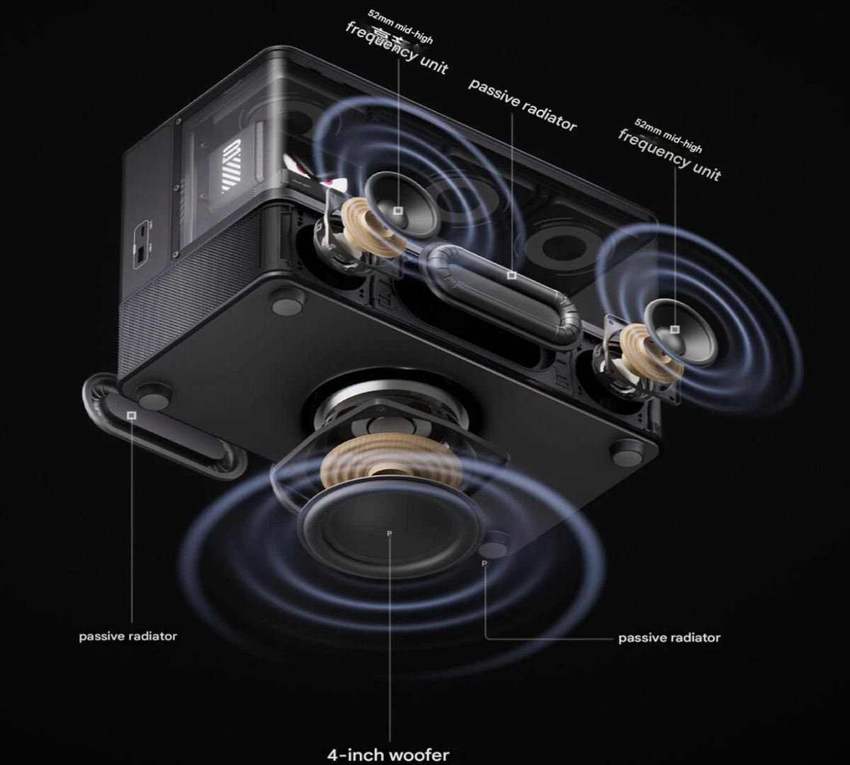 وراء الشكل اللافت، يقدّم Edifier Huazai New Cyber أداءً صوتيًا متزنًا أكثر من كونه صاخبًا، فالمكبر يعتمد على نظام مُزدوج للسماعات ومضخّم صوت مُدمج يمنح صوت البيس "Bass" عُمقًا دون تشويش، مع وضوح في النغمات العالية.