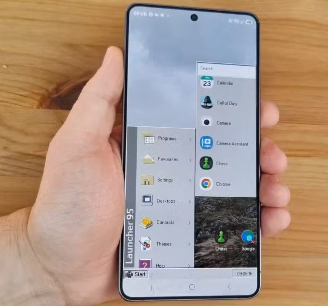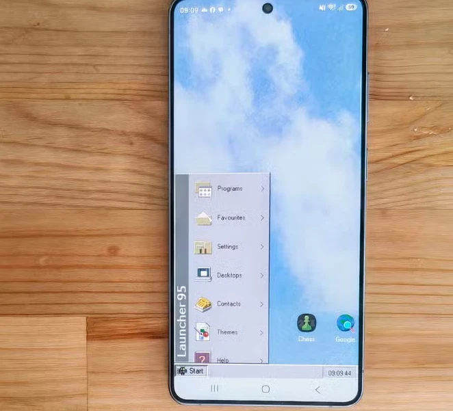 في تجربة لافتة، قرر الصحفي التقني توم بيدفورد (عمل لدى منصات مثل Digital Trends) تحويل هاتفه الذي تبلغ قيمته 1000 دولار إلى حاسوب مكتبي مُصغر يعمل بنظام ويندوز 95، وذلك باستخدام لانشر على جوجل بلاي.
