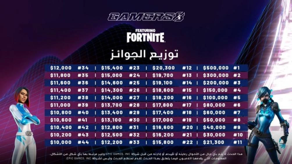 أولى منافسات النخبة تنطلق من خلال لعبة فورتنايت في الفترة من 6 إلى 9 يوليو 2023 على ارض بوليفارد رياض سيتي ضمن فعاليات موسم الجيمرز أرض الأبطال، ولا ننسى أن بطولات فورتنايت تضم أفضل الفرق الثنائية في العالم وتقدم جوائز مجموعها 2 مليون دولار.