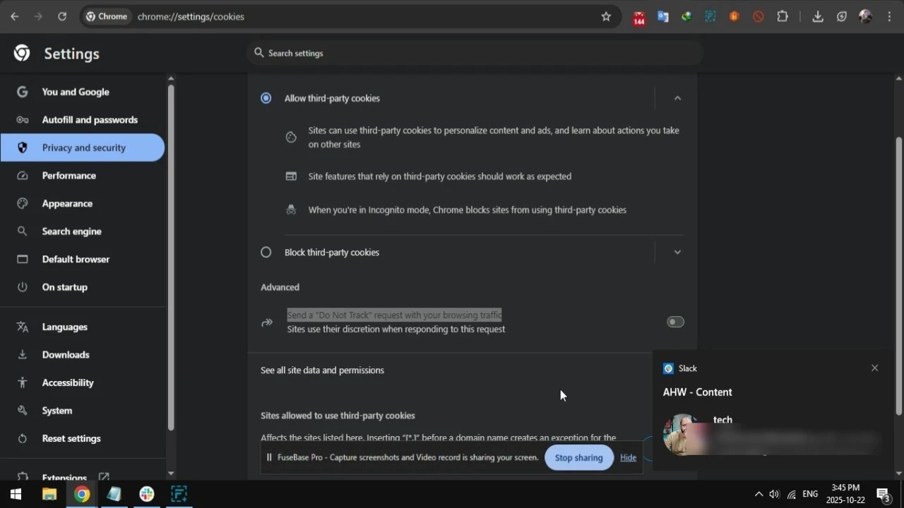 - افتح إعدادات كروم وراجع خصوصية الموقع وملفات تعريف الارتباط، وفكّر في تعطيل التتبع عند غير الحاجة.